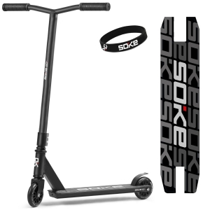 Hulajnoga dwukołowa, wyczynowa, SOKE GO!, czarna. Zaczniesz wymiatać na streecie i parku, bo wszystkie TRICKI przyjdą znacznie łatwiej. Zaskocz wszystkich znajomych najlepszym freestylem. Sprawdź jak można pozamiatać na hulajkach ze stajni SOKE! Hulajnogi SOKE wyróżnia to, że są projektowane i testowane przez najlepszych riderów.