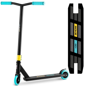 Hulajnoga dwukołowa, wyczynowa, SOKE GO!, żółto-niebieska. Zaczniesz wymiatać na streecie i parku, bo wszystkie TRICKI przyjdą znacznie łatwiej. Zaskocz wszystkich znajomych najlepszym freestylem. Sprawdź jak można pozamiatać na hulajkach ze stajni SOKE! Hulajnogi SOKE wyróżnia to, że są projektowane i testowane przez najlepszych riderów.