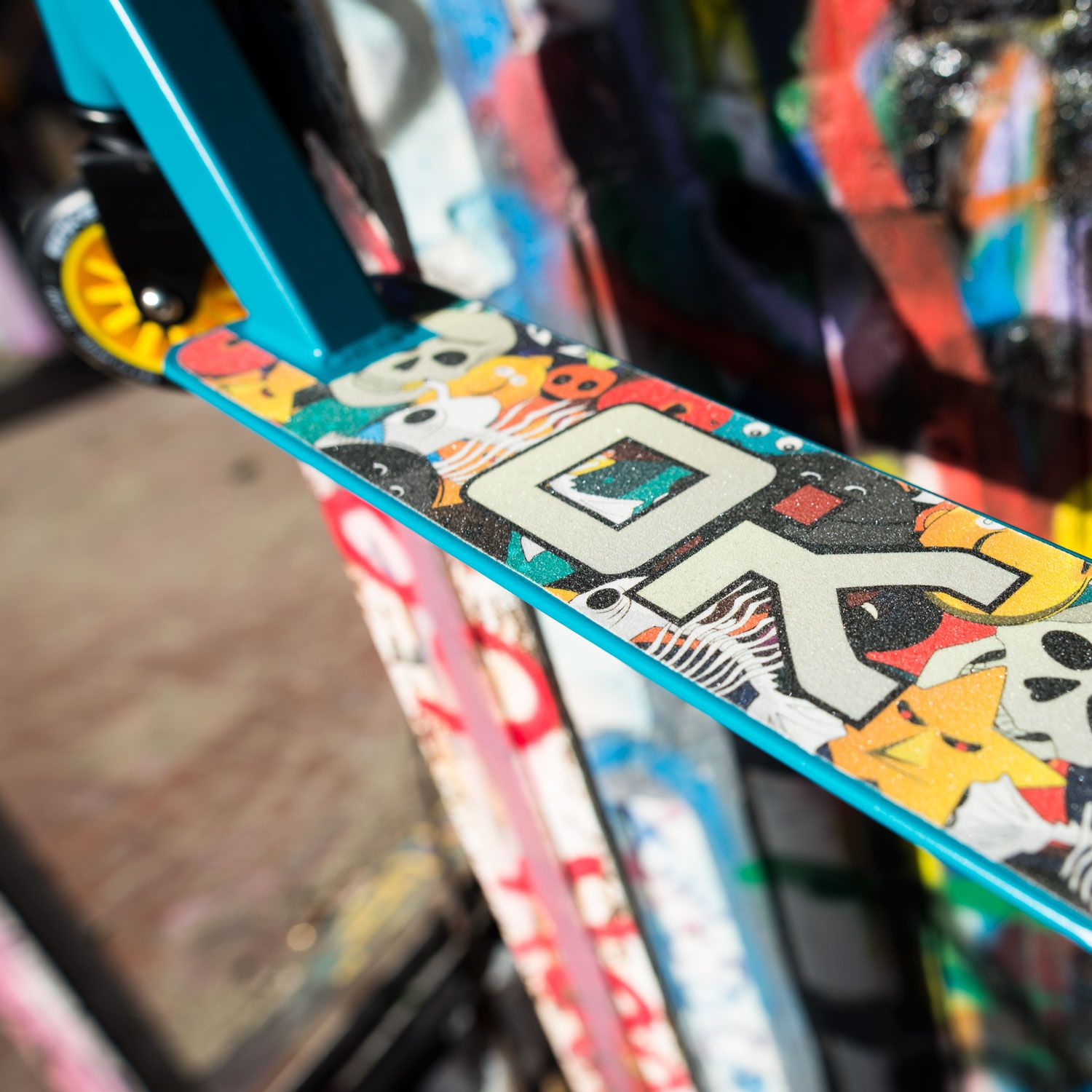 Hulajnoga dwukołowa, wyczynowa, SOKE GO!, żółto-niebieska. Zaczniesz wymiatać na streecie i parku, bo wszystkie TRICKI przyjdą znacznie łatwiej. Zaskocz wszystkich znajomych najlepszym freestylem. Sprawdź jak można pozamiatać na hulajkach ze stajni SOKE! Hulajnogi SOKE wyróżnia to, że są projektowane i testowane przez najlepszych riderów.