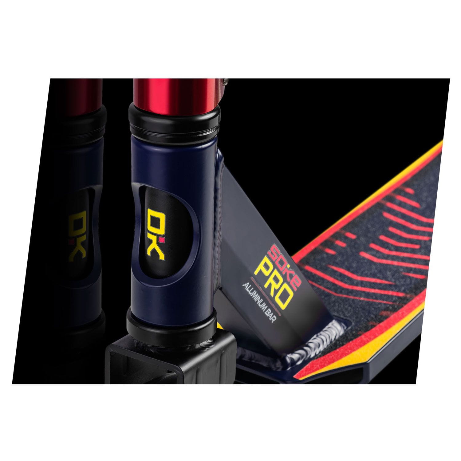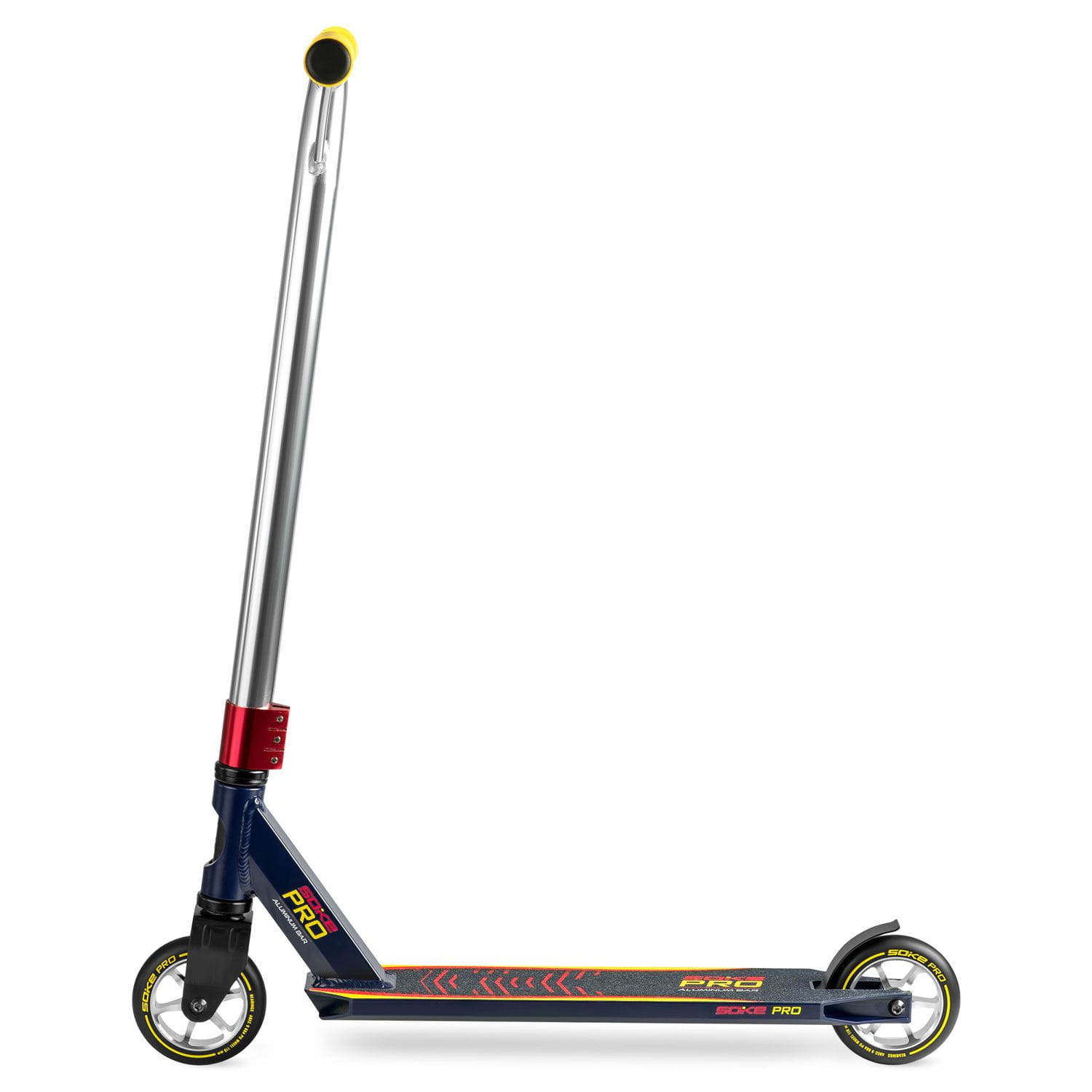 Hulajnoga dwukołowa, wyczynowa, Soke PRO, granatowo-czerwona. Zaczniesz wymiatać na streecie i parku, bo wszystkie TRICKI przyjdą znacznie łatwiej. Zaskocz wszystkich znajomych najlepszym freestylem. Sprawdź jak można pozamiatać na hulajkach ze stajni SOKE! Hulajnogi SOKE wyróżnia to, że są projektowane i testowane przez najlepszych riderów.