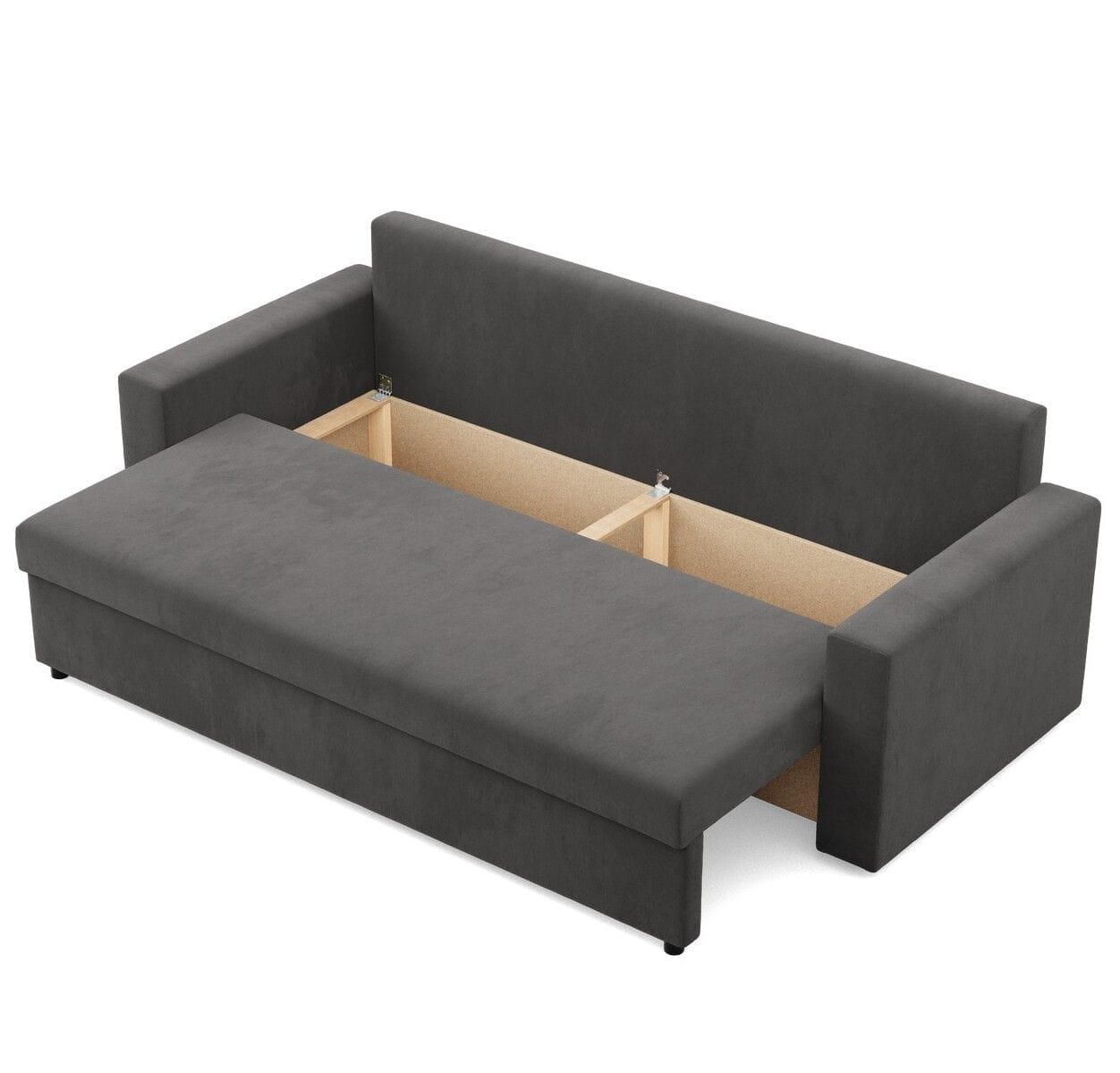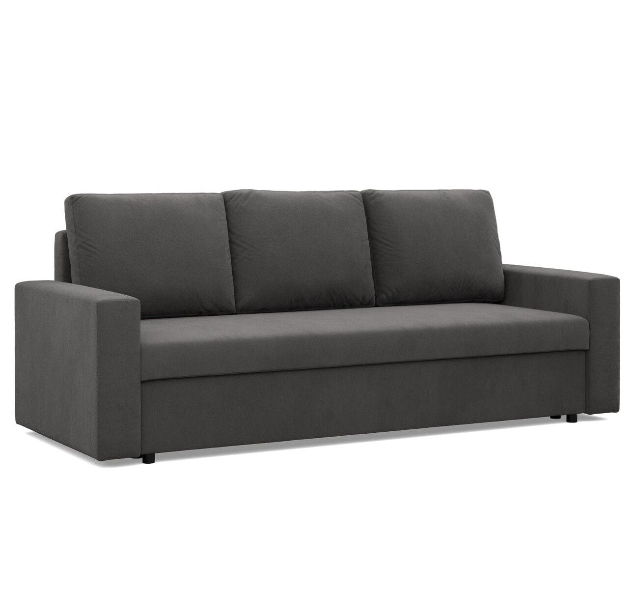 Kanapa 3osobowa, BLOM, Mikrofaza, 220x92x85 cm, szary. Szukasz minimalistycznej kanapy, która w łatwy i szybki sposób zmieni się w komfortowe miejsce do snu? Kanapa BLOM to mebel, który zapewnia komfort użytkowania oraz stabilność konstrukcyjną. Dodatkowym atutem kanapy jest funkcja spania, dzięki czemu produkt sprawdzi się jako mebel do użytku codziennego lub jako wygodne łóżko dla gości.