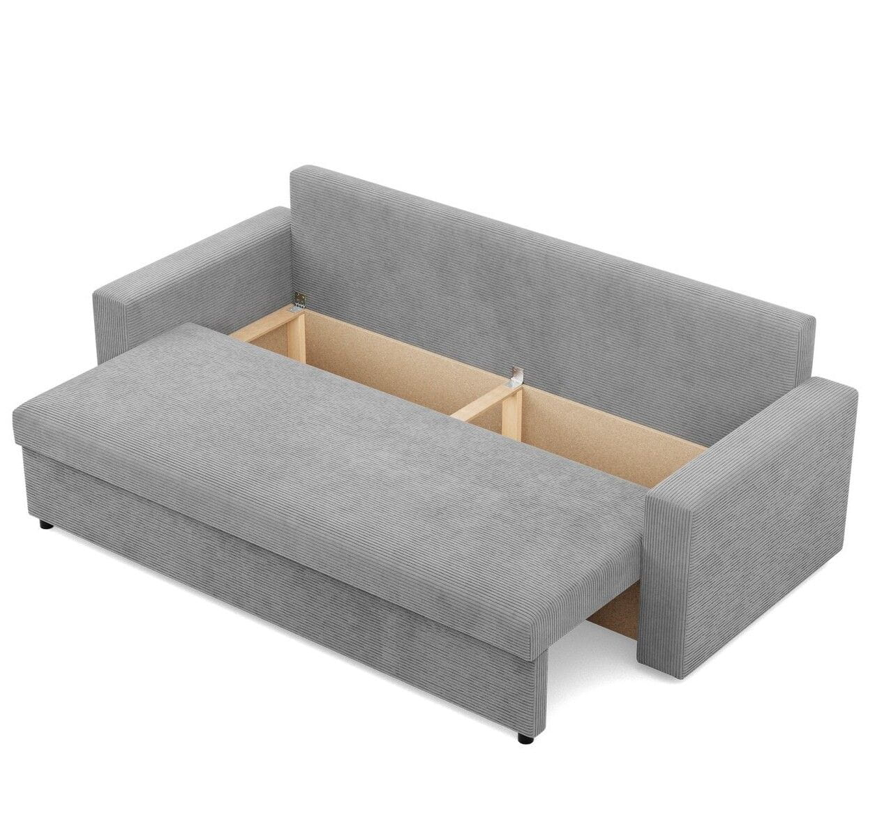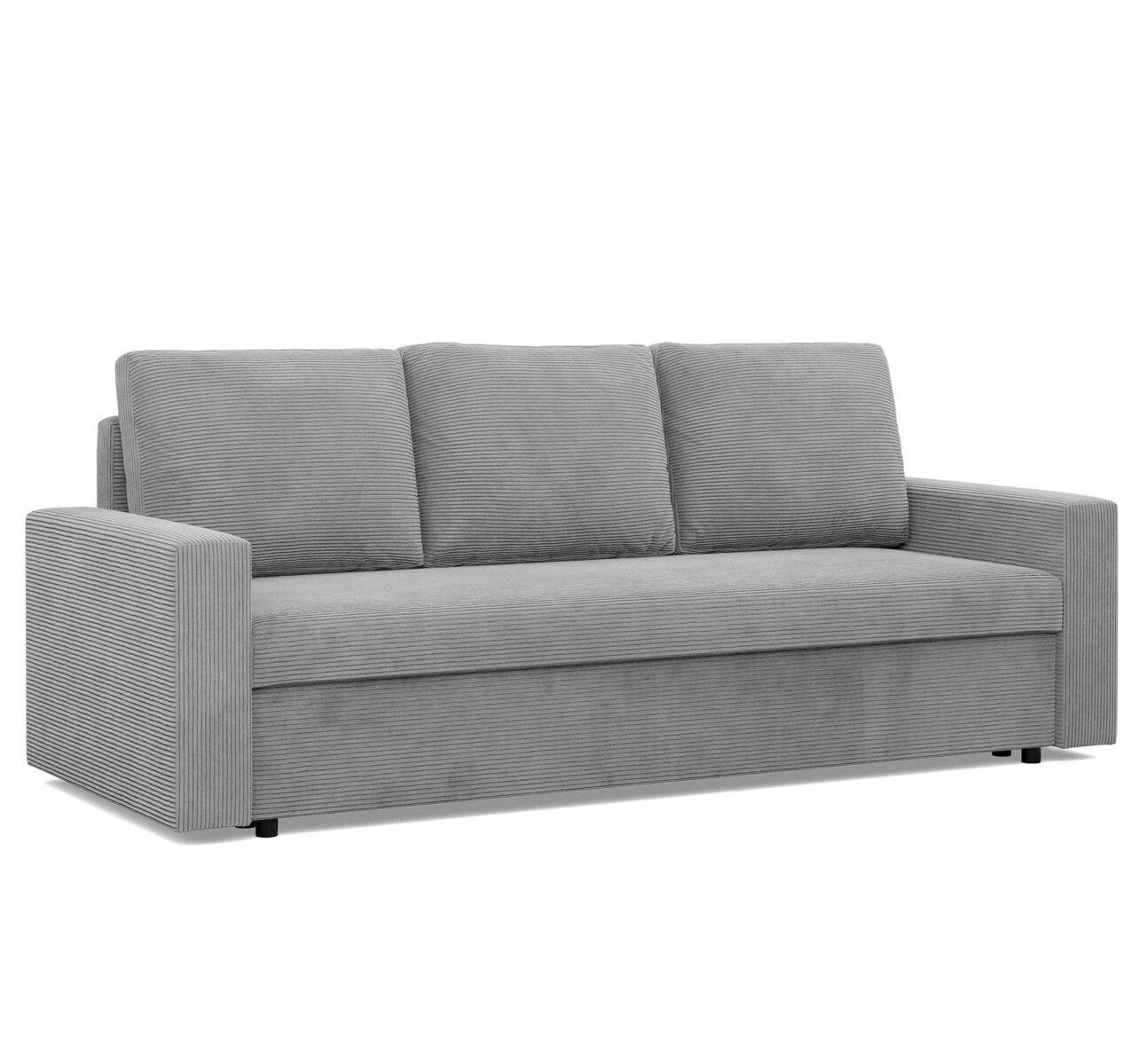 Kanapa 3 osobowa, BLOM, sztruks, 220x92x92 cm, jasny szary. Szukasz minimalistycznej kanapy, która w łatwy i szybki sposób zmieni się w komfortowe miejsce do snu? Kanapa BLOM to mebel, który zapewnia komfort użytkowania oraz stabilność konstrukcyjną. Dodatkowym atutem kanapy jest funkcja spania, dzięki czemu produkt sprawdzi się jako mebel do użytku codziennego lub jako wygodne łóżko dla gości.