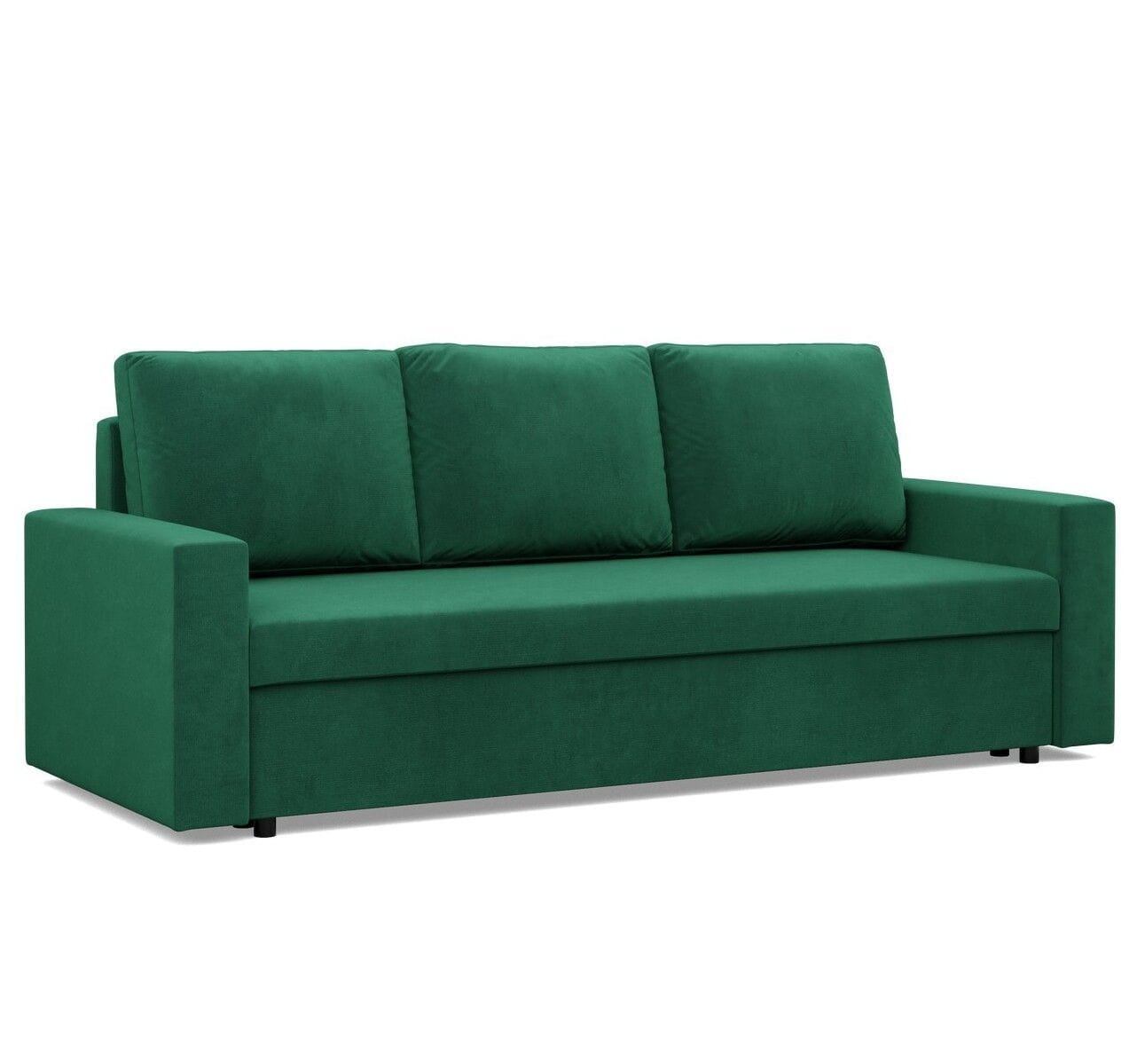 Kanapa 3 osobowa, BLOM, velvet, 220x92x92 cm, butelkowa zieleń. Szukasz minimalistycznej kanapy, która w łatwy i szybki sposób zmieni się w komfortowe miejsce do snu? Kanapa BLOM to mebel, który zapewnia komfort użytkowania oraz stabilność konstrukcyjną. Dodatkowym atutem kanapy jest funkcja spania, dzięki czemu produkt sprawdzi się jako mebel do użytku codziennego lub jako wygodne łóżko dla gości.