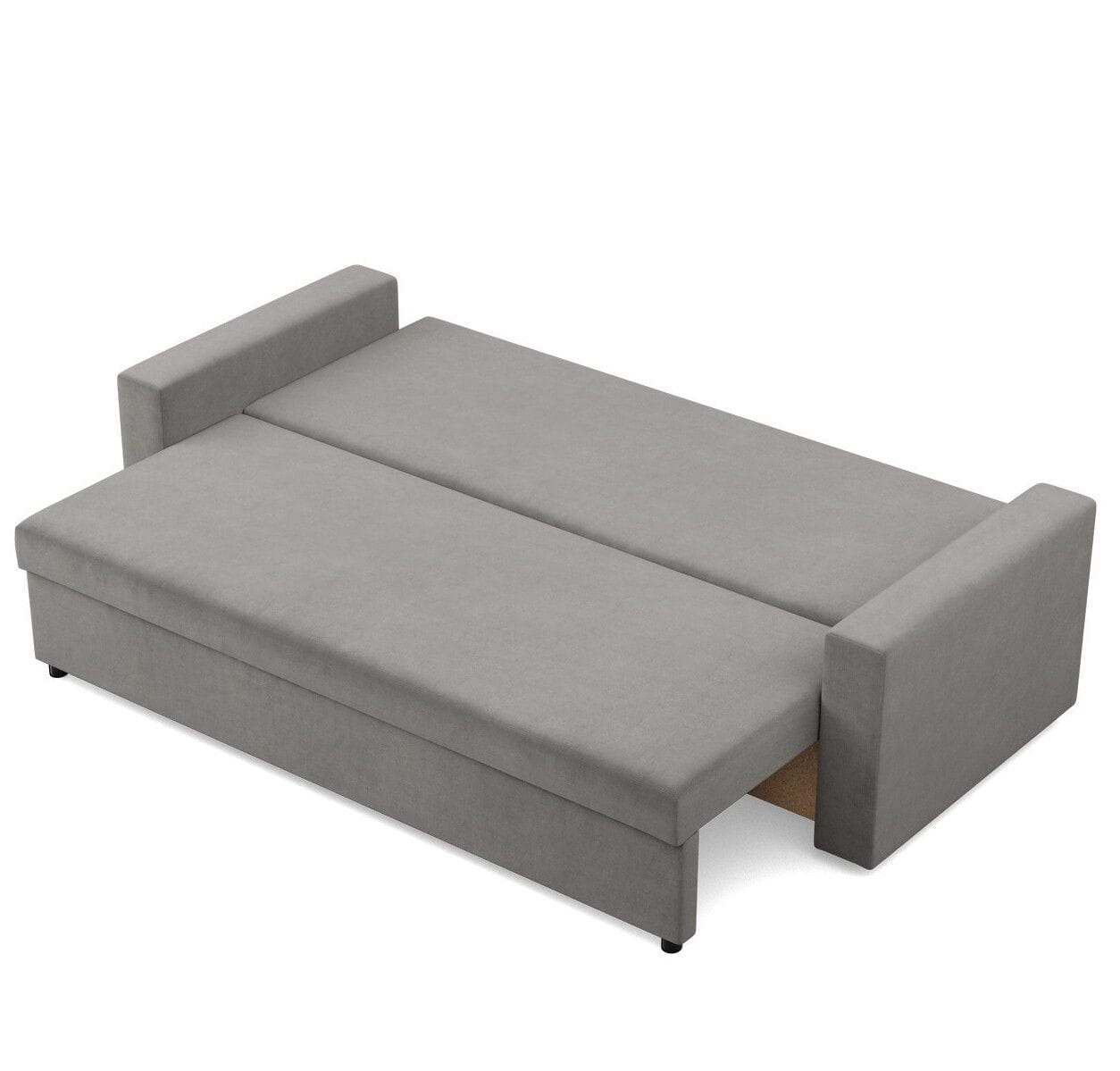 Kanapa 3 osobowa, BLOM, velvet, 220x92x92 cm, jasny szary. Szukasz minimalistycznej kanapy, która w łatwy i szybki sposób zmieni się w komfortowe miejsce do snu? Kanapa BLOM to mebel, który zapewnia komfort użytkowania oraz stabilność konstrukcyjną. Dodatkowym atutem kanapy jest funkcja spania, dzięki czemu produkt sprawdzi się jako mebel do użytku codziennego lub jako wygodne łóżko dla gości.