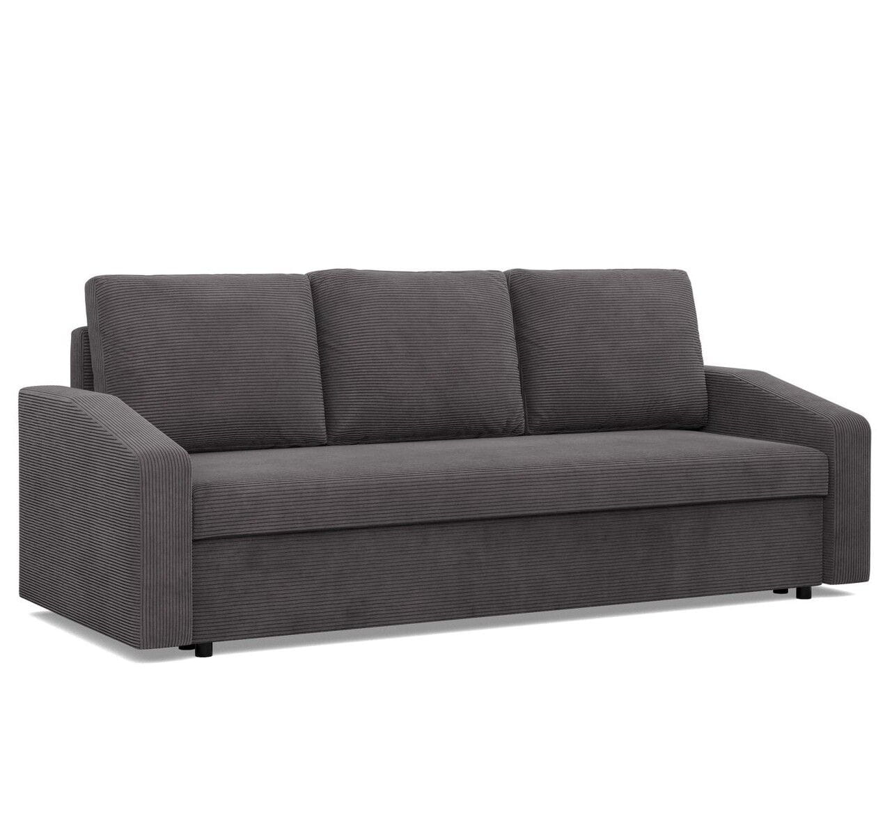 Kanapa rozkładana, BLOM, sztruks, 220x92x92 cm, ciemny szary. Szukasz minimalistycznej kanapy, która w łatwy i szybki sposób zmieni się w komfortowe miejsce do snu? Kanapa BLOM to mebel, który zapewnia komfort użytkowania oraz stabilność konstrukcyjną. Dodatkowym atutem kanapy jest funkcja spania, dzięki czemu produkt sprawdzi się jako mebel do użytku codziennego lub jako wygodne łóżko dla gości.