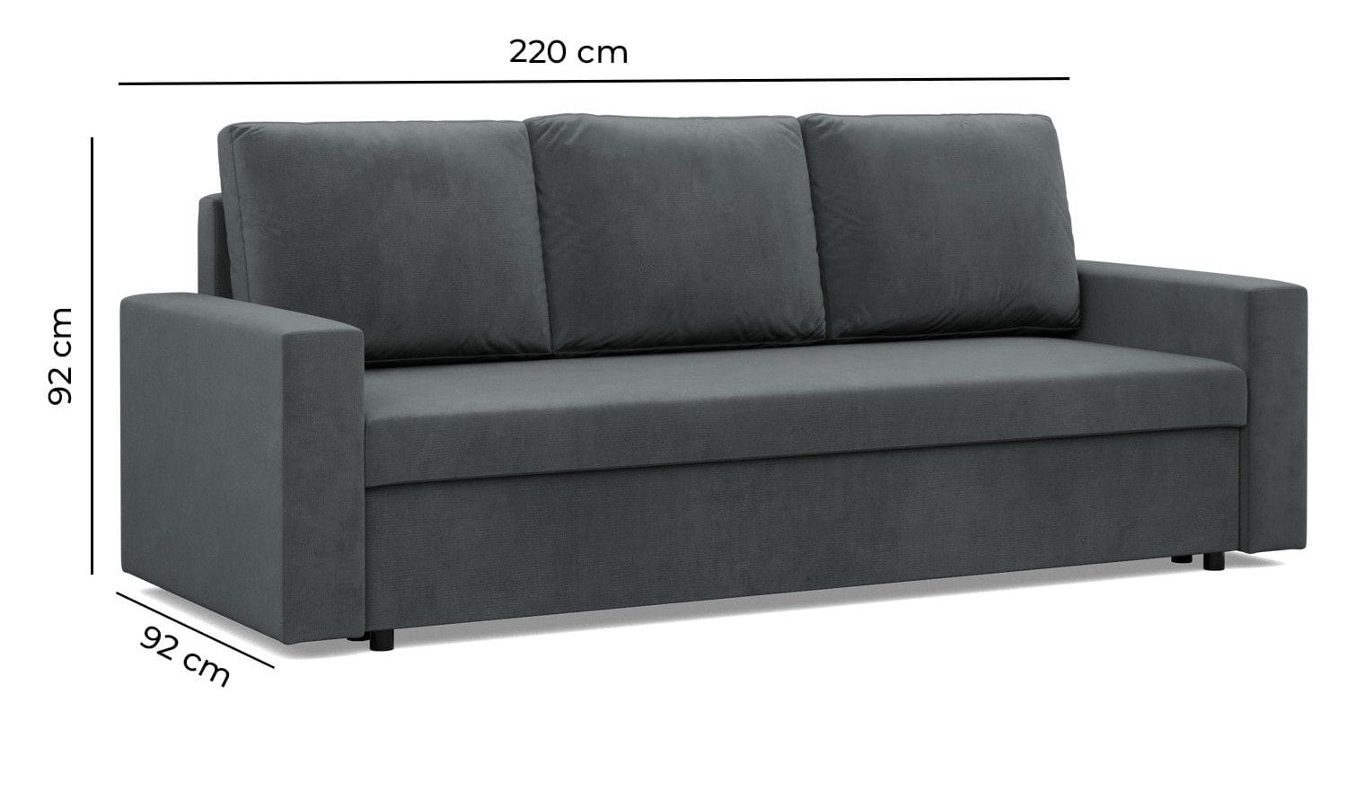Kanapa rozkładana, BLOM, sztruks, 220x92x92 cm, granatowy. Szukasz minimalistycznej kanapy, która w łatwy i szybki sposób zmieni się w komfortowe miejsce do snu? Kanapa BLOM to mebel, który zapewnia komfort użytkowania oraz stabilność konstrukcyjną. Dodatkowym atutem kanapy jest funkcja spania, dzięki czemu produkt sprawdzi się jako mebel do użytku codziennego lub jako wygodne łóżko dla gości.