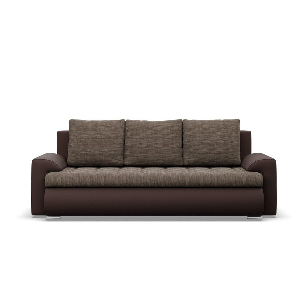 Kanapa rozkładana, Bosco, plecionka, ekoskóra, 222x96x92 cm, brąz
