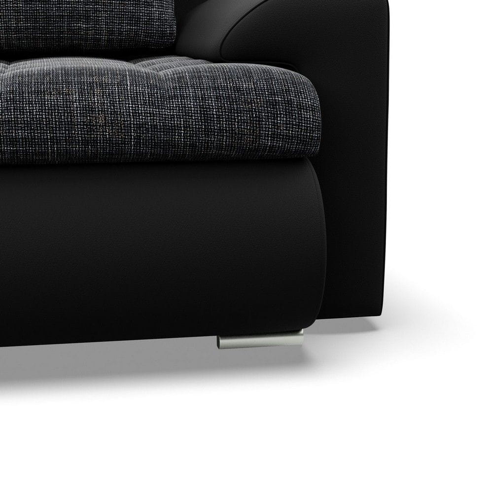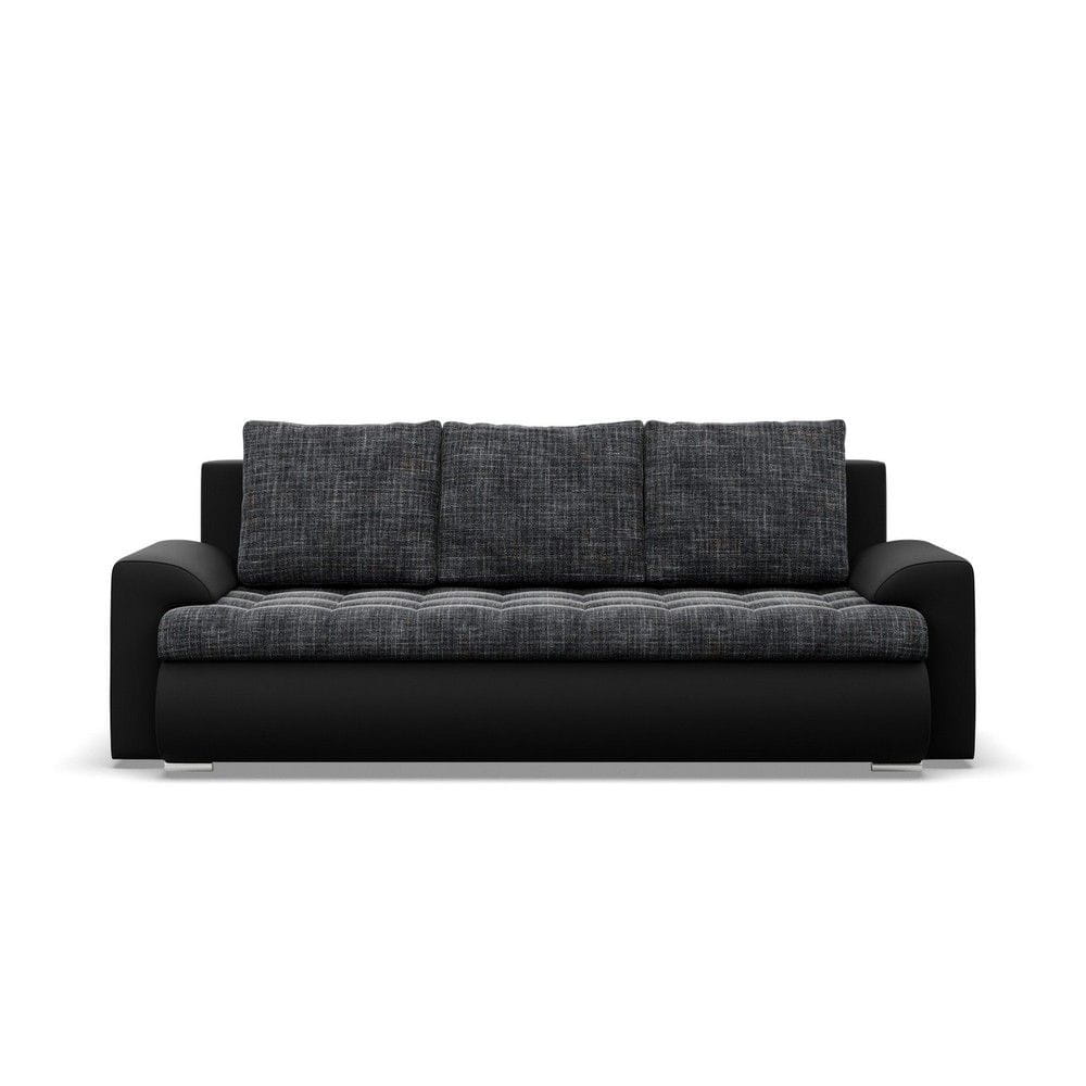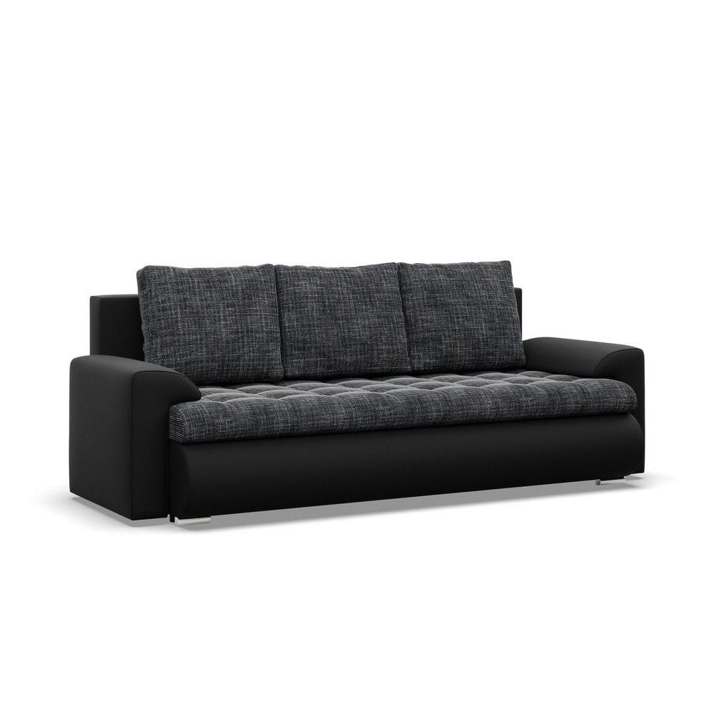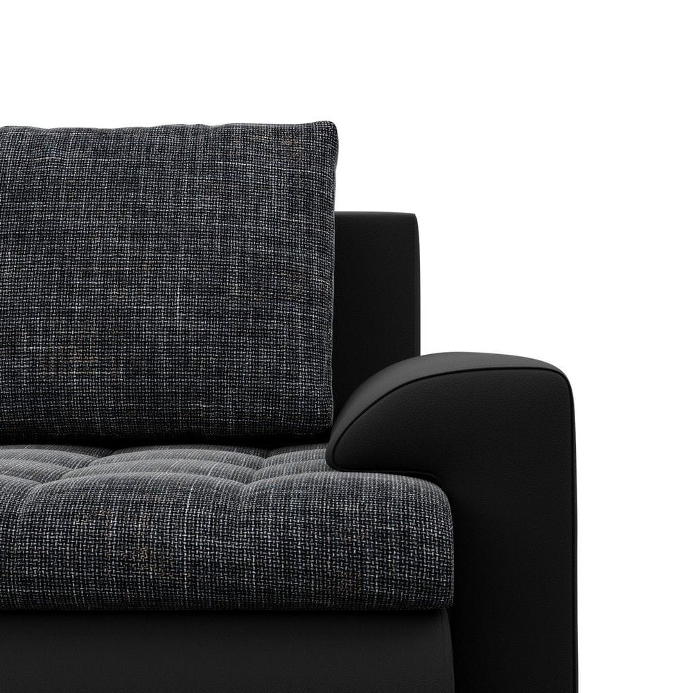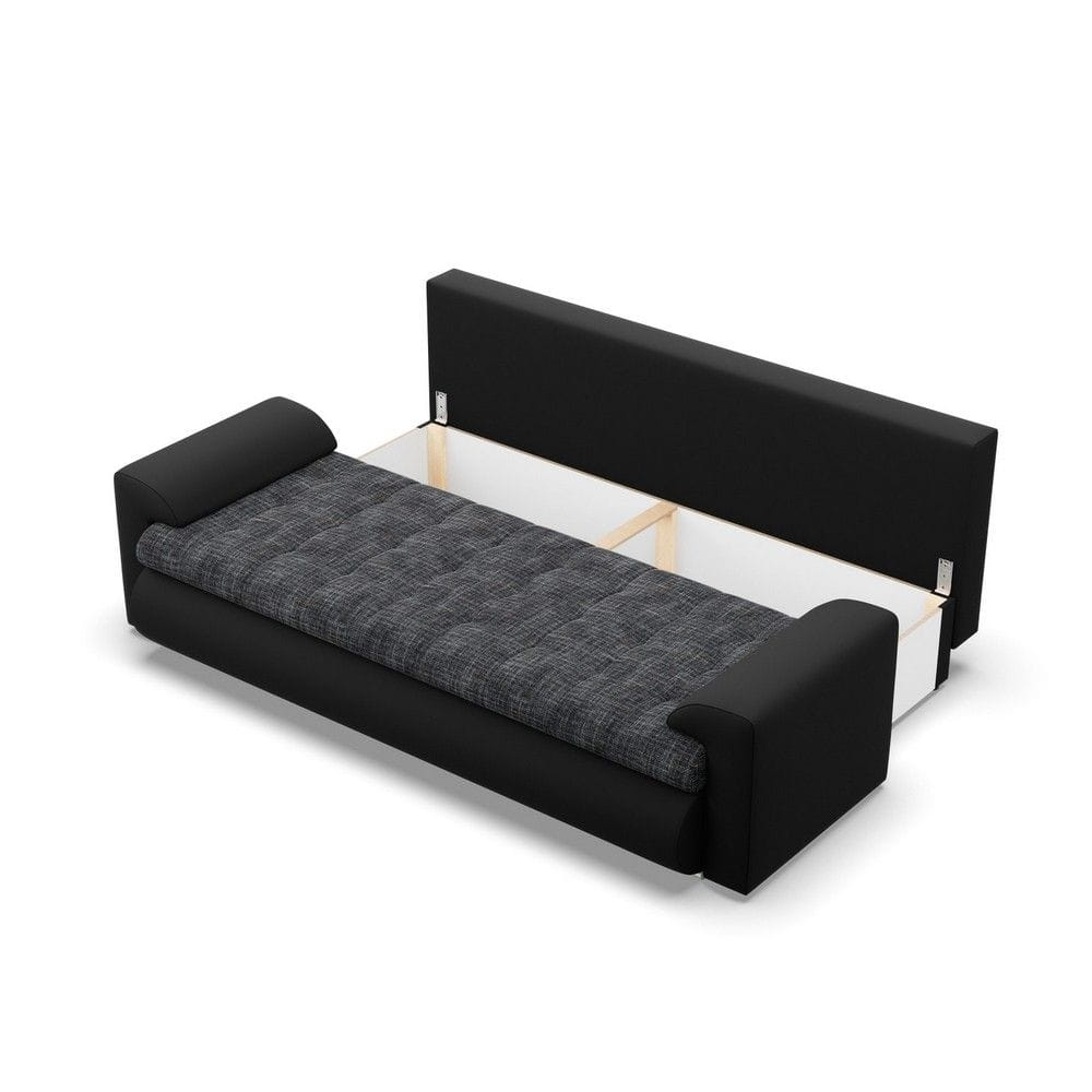 Kanapa rozkładana, Bosco, plecionka, ekoskóra, 222x96x92 cm, ciemny szary, czarny