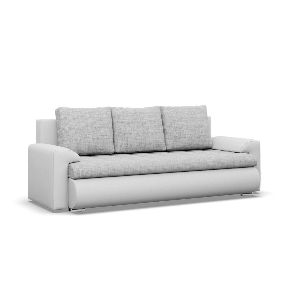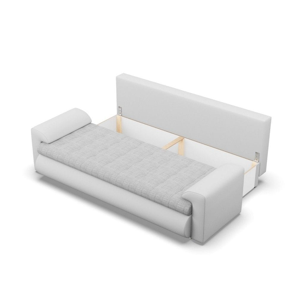 Kanapa rozkładana, Bosco, plecionka, ekoskóra, 222x96x92 cm, jasny szary, biały