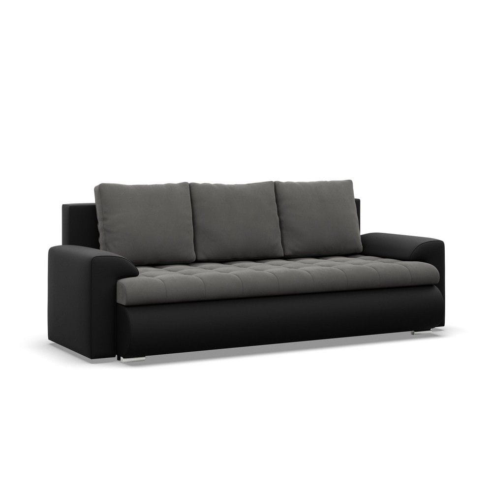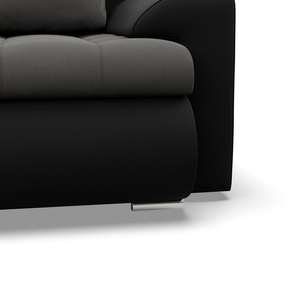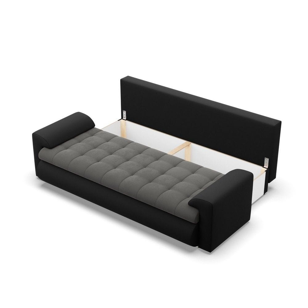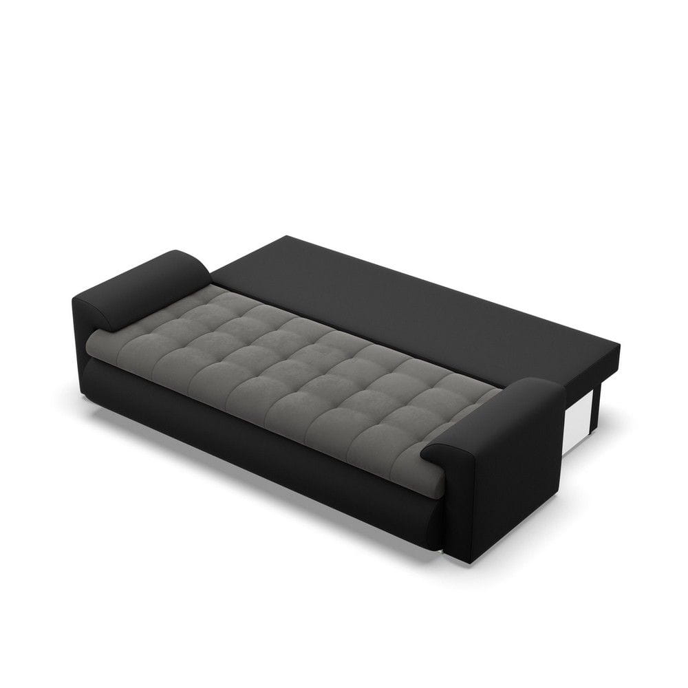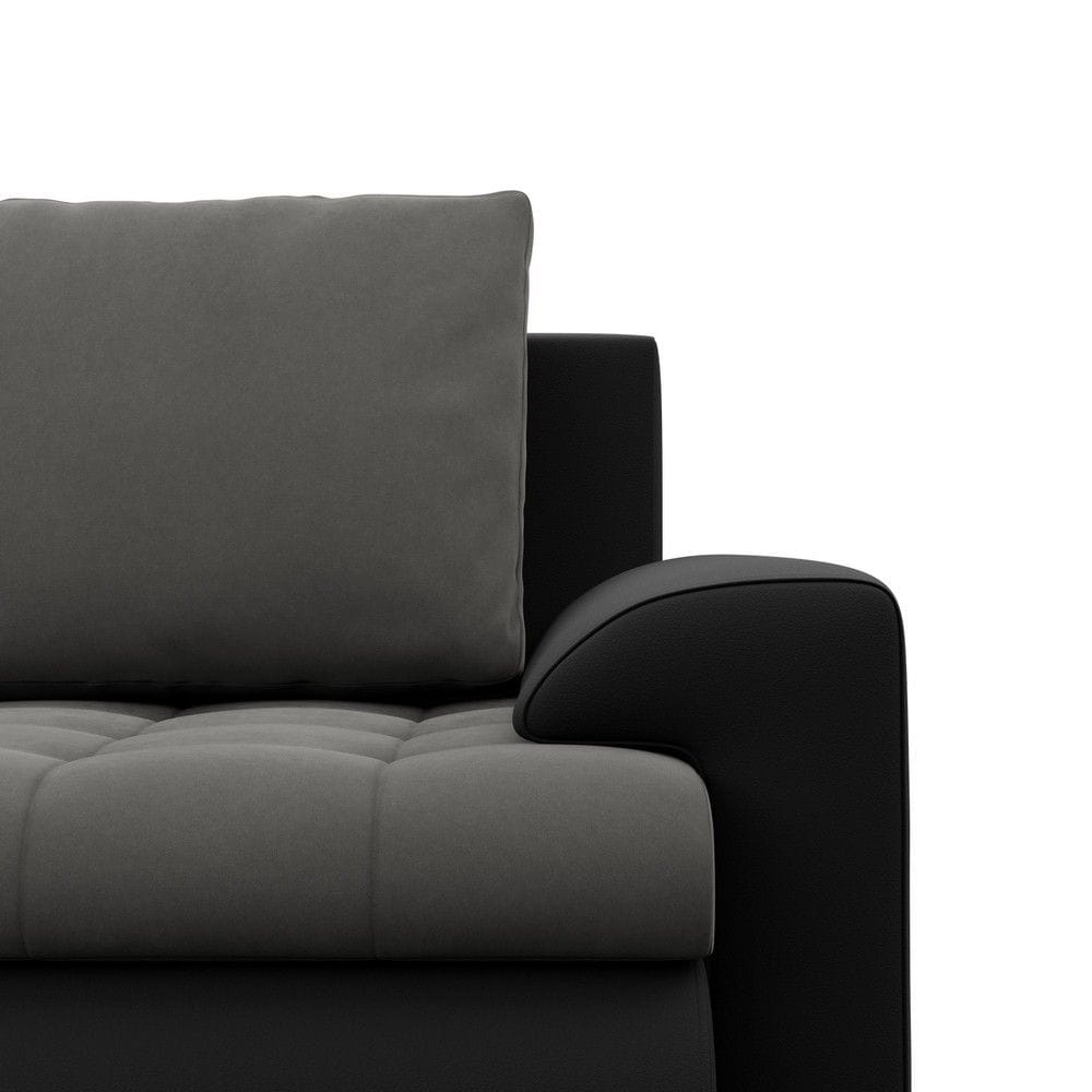 Kanapa rozkładana, Bosco, velvet, ekoskóra, 222x96x92 cm, ciemny szary, czarny