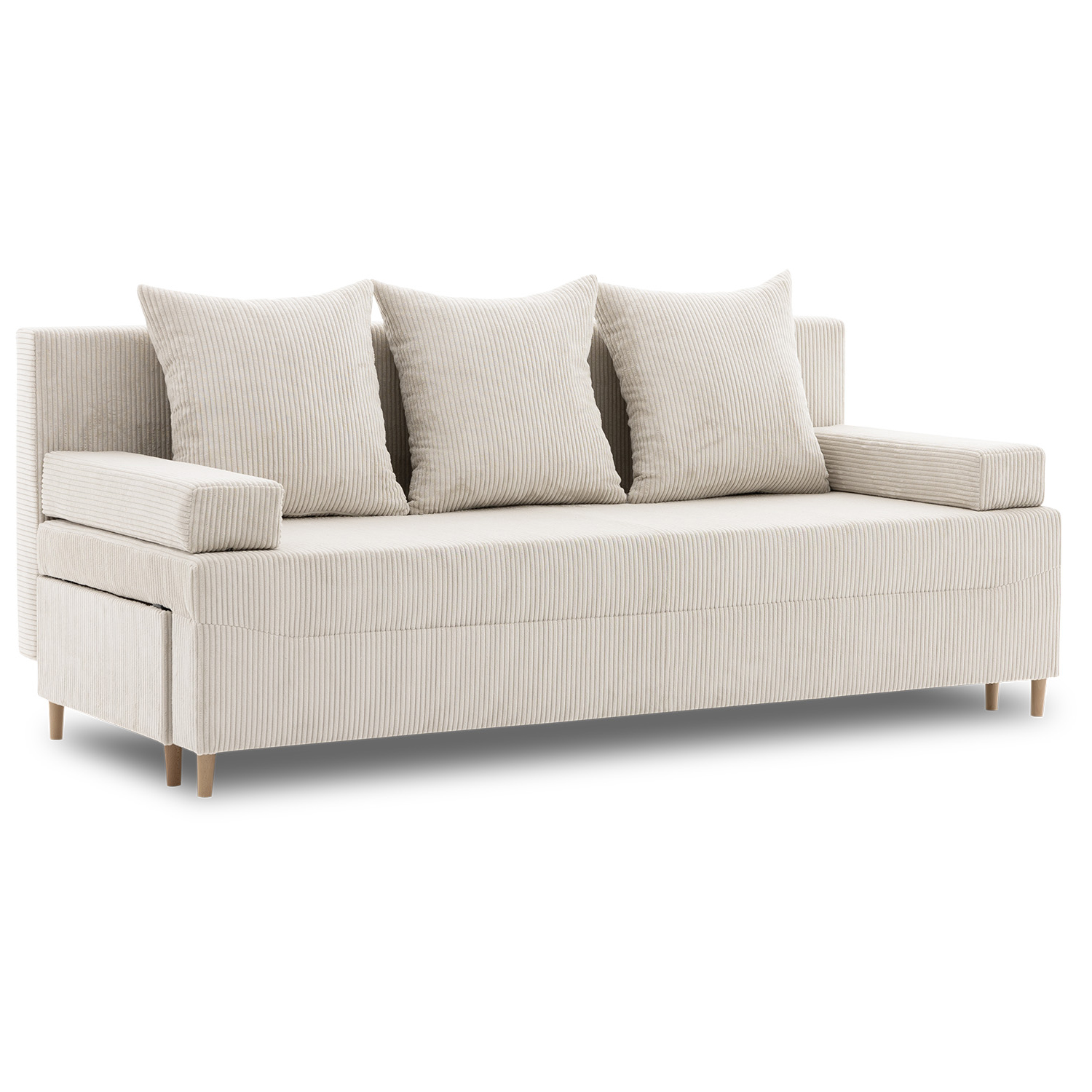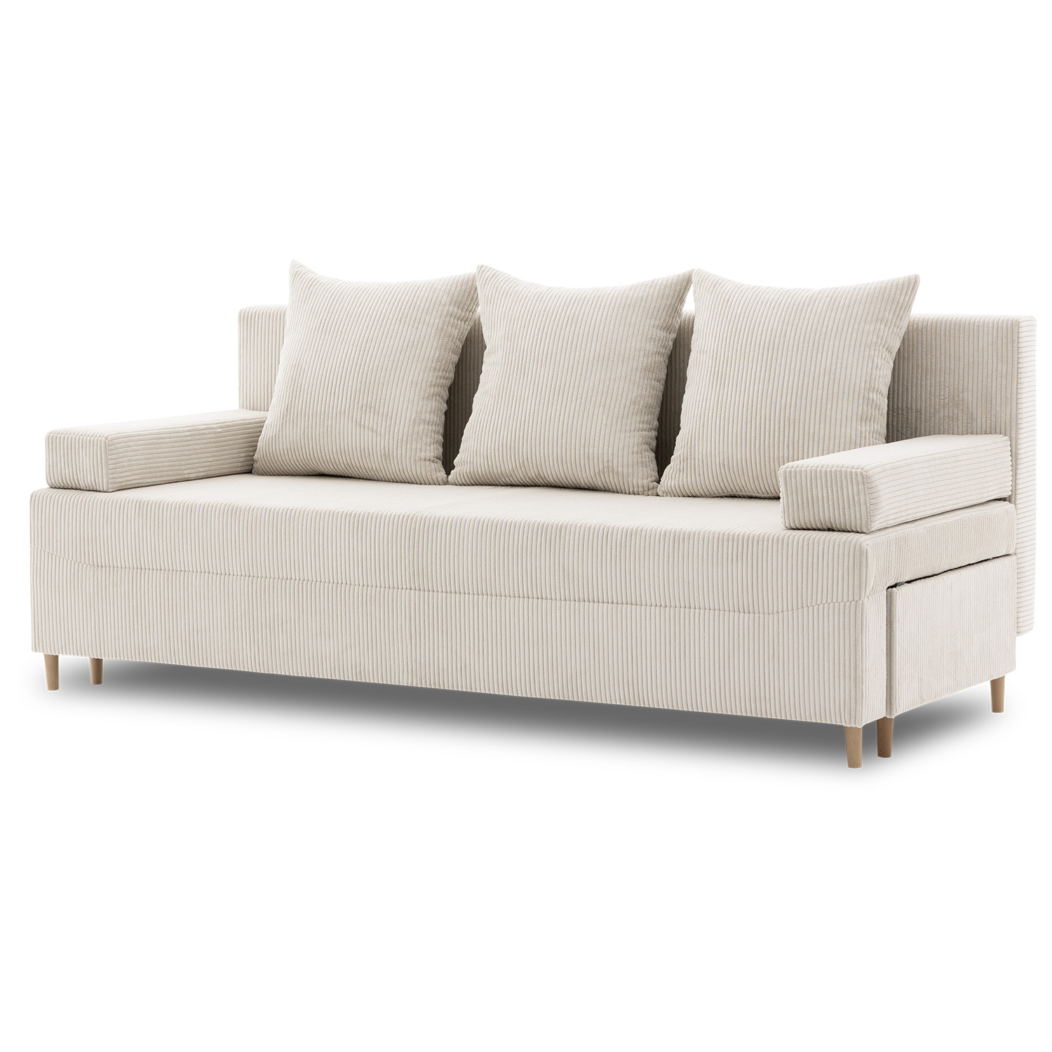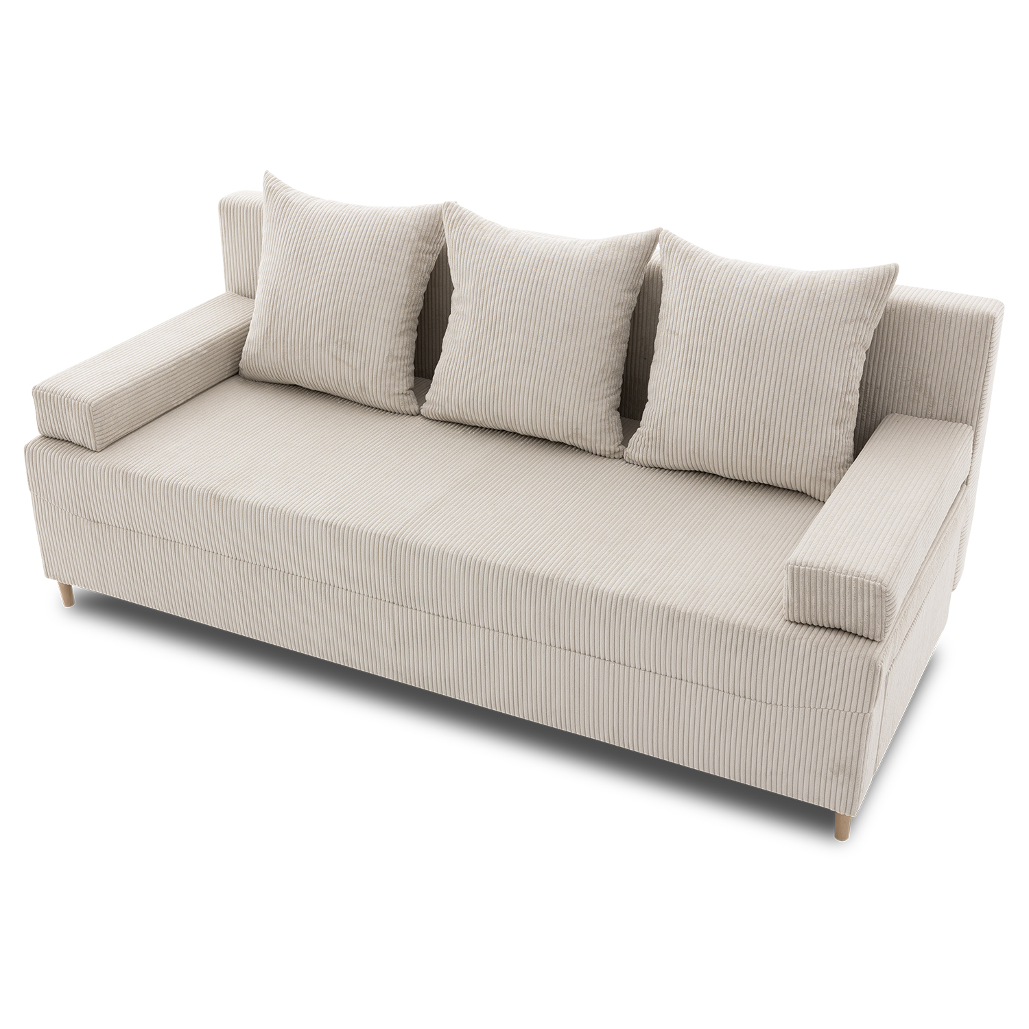 Kanapa rozkładana do salonu, sztruks, PANORA, 191x92x92 cm, beżowy