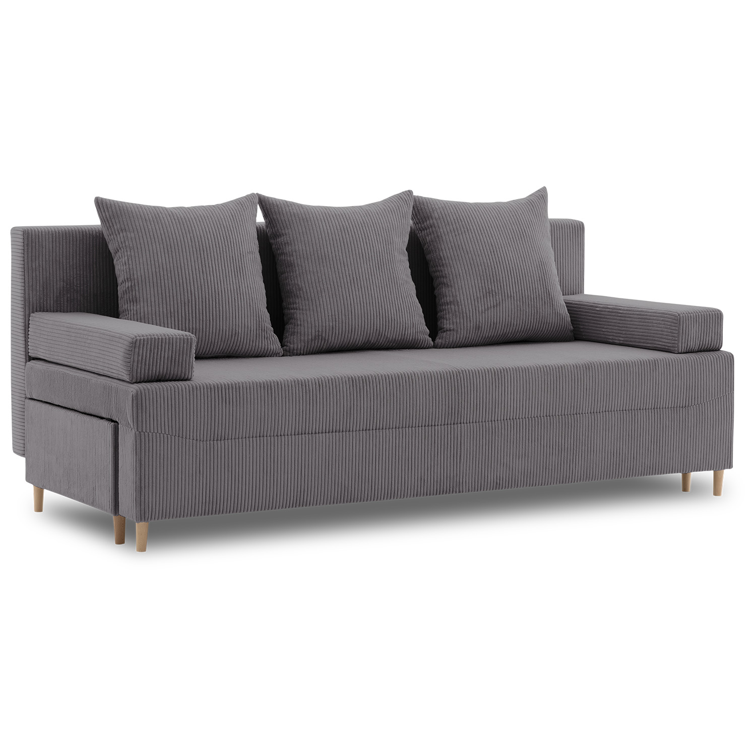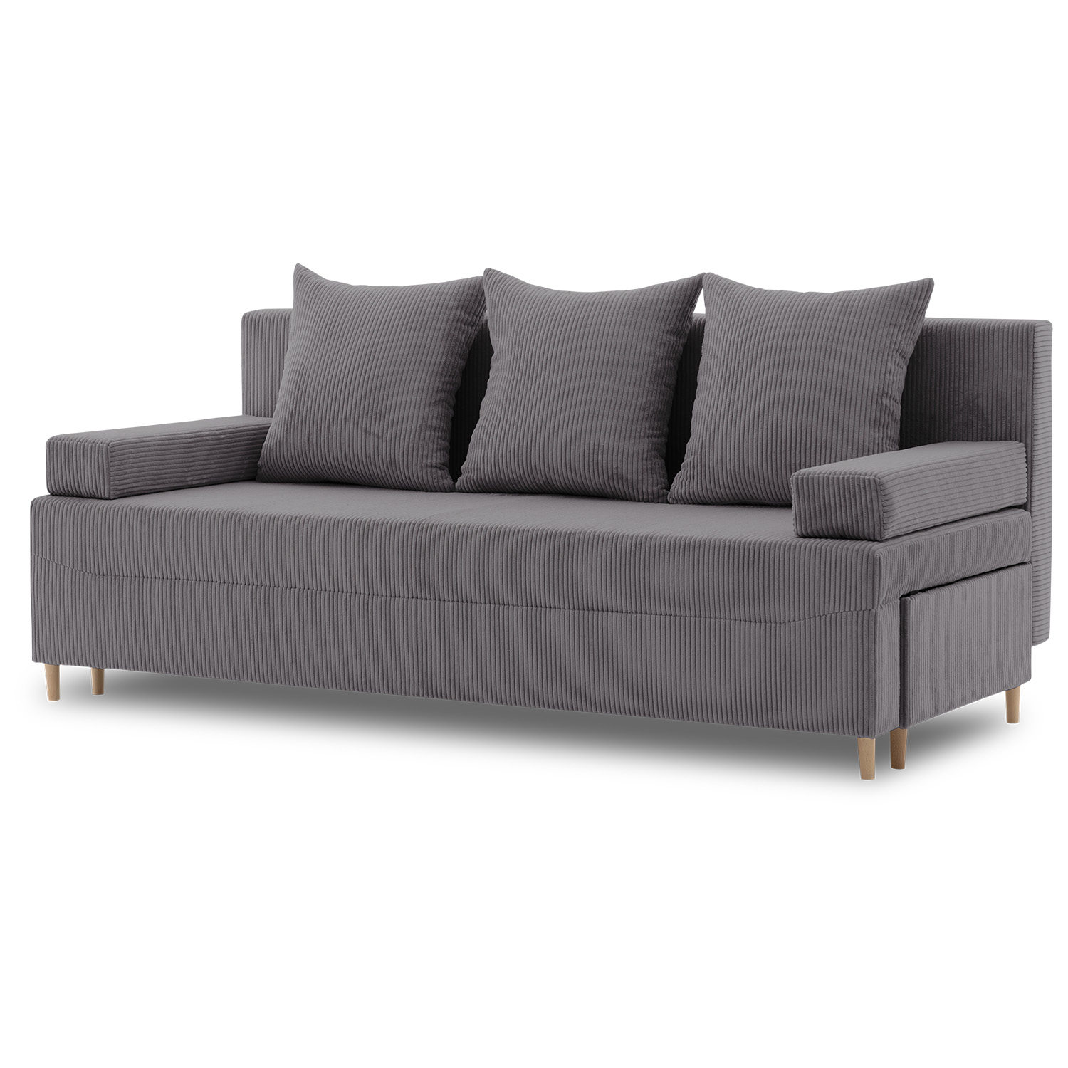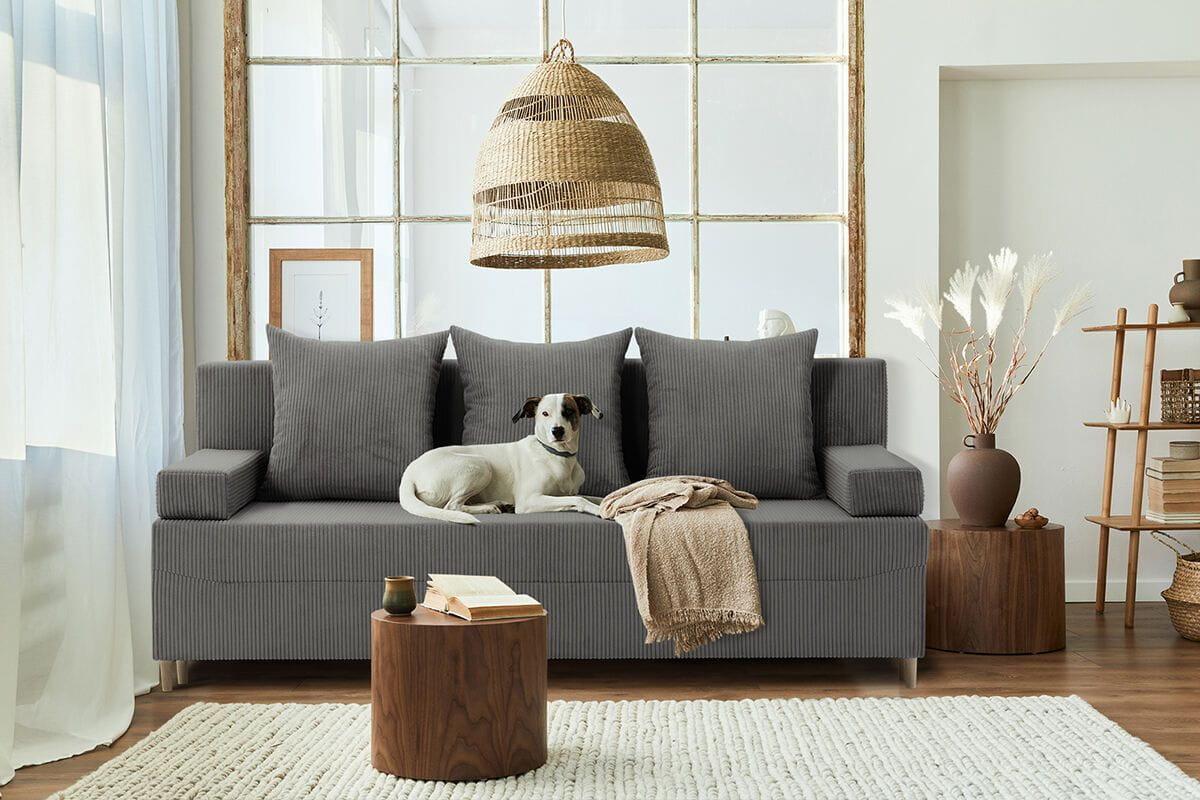 Kanapa rozkładana do salonu, sztruks, PANORA, 191x92x92 cm, ciemny szary