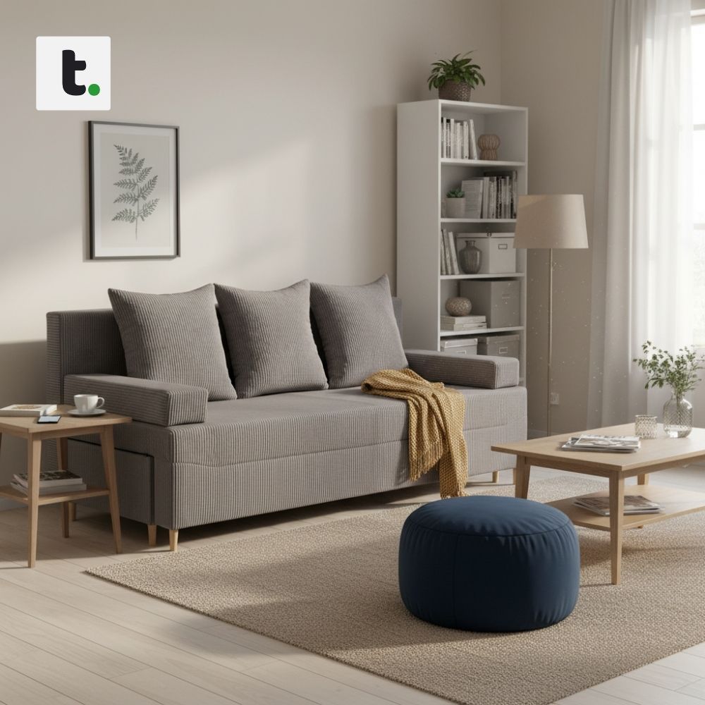 Kanapa rozkładana do salonu, sztruks, PANORA, 191x92x92 cm, ciemny szary. PANORA to zgrabny mebel, który zmieści się w każdym pomieszczeniu. Posiada też funkcję spania, dzięki czemu raz po raz może pełnić rolę łóżka, kiedy wpadną do Ciebie niezapowiedziani goście.
