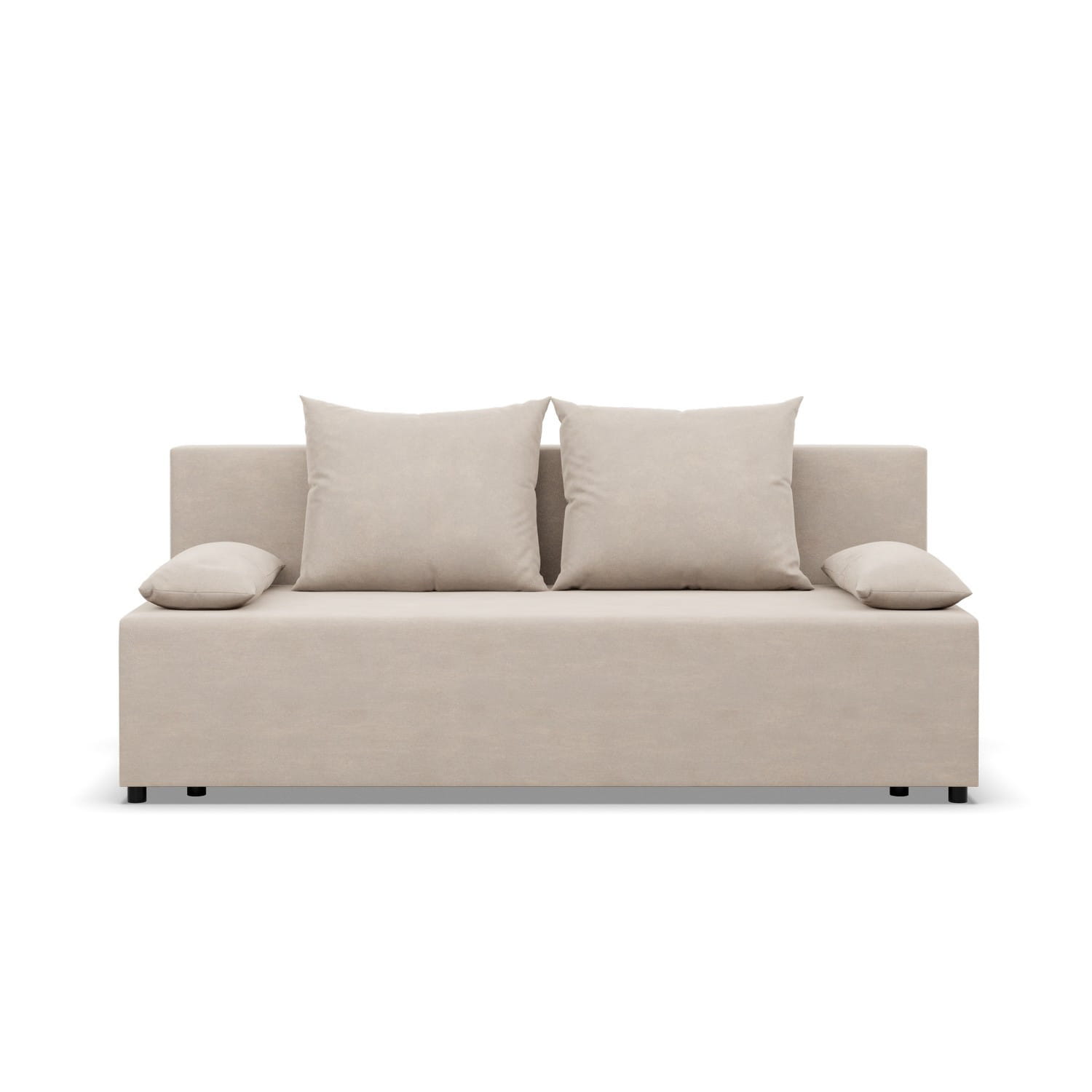 Kanapa rozkładana, Vista, velvet, 191x92x95 cm, beżowy. VISTA to kanapa o prostym kształcie, minimalistycznym wyglądzie oraz kompaktowym rozmiarze, która dopełni zarówno mniejszy salon, jak i pokój dzienny. Komfort użytkowania zapewnia wypełnienie mebla pianką poliuretanową i sprężynami typu bonell.