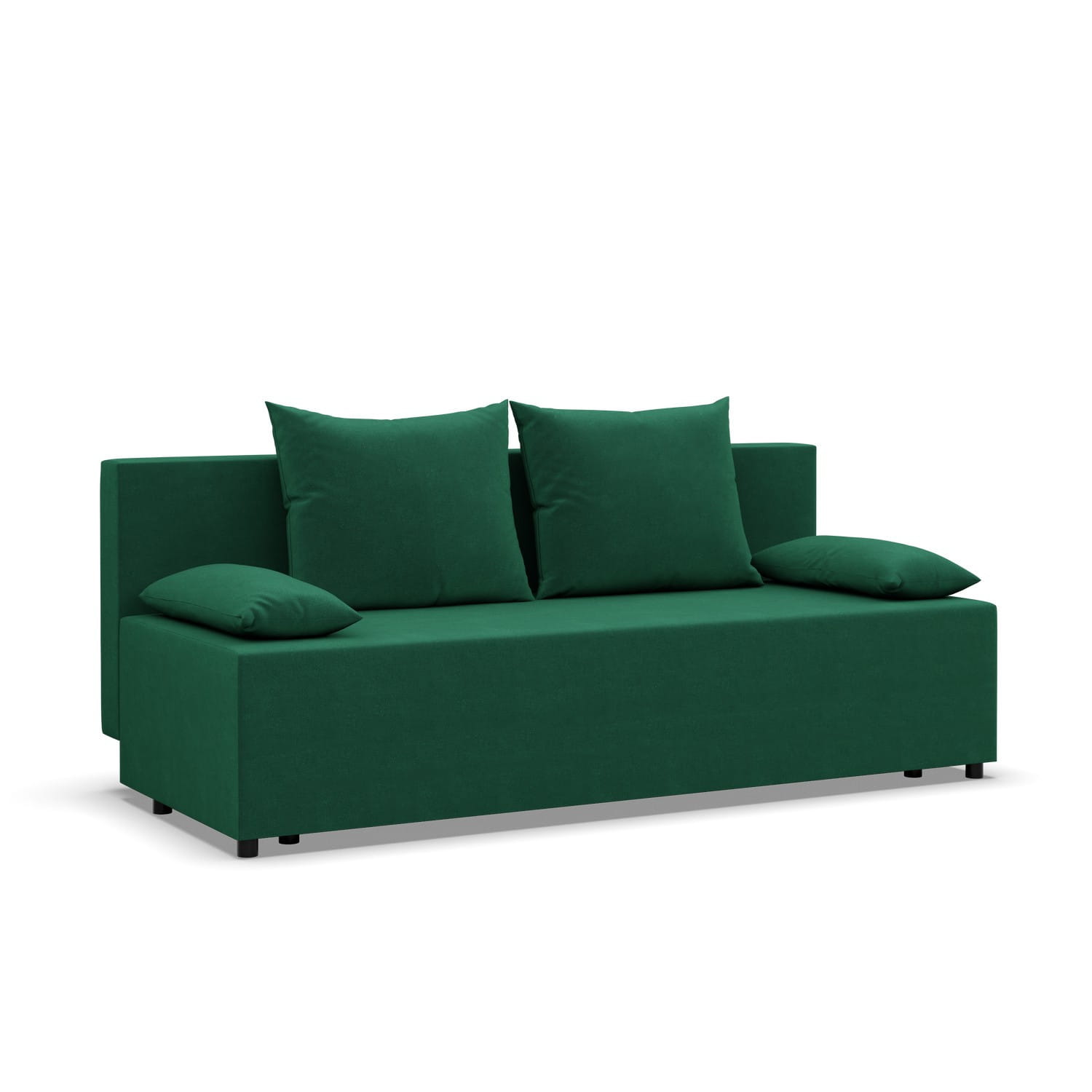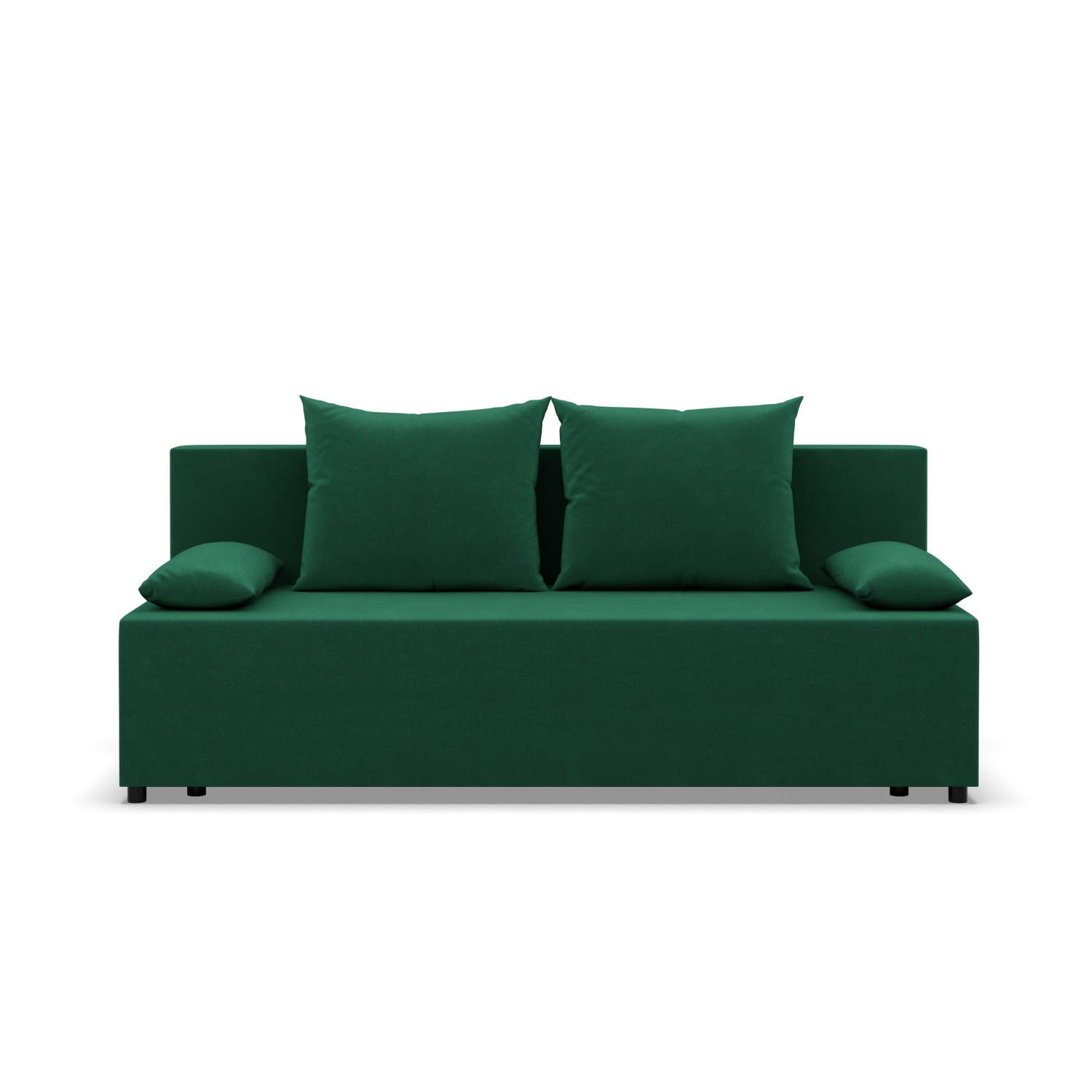 Kanapa rozkładana, Vista, velvet, 191x92x95 cm, butelkowa zieleń. VISTA to kanapa o prostym kształcie, minimalistycznym wyglądzie oraz kompaktowym rozmiarze, która dopełni zarówno mniejszy salon, jak i pokój dzienny. Komfort użytkowania zapewnia wypełnienie mebla pianką poliuretanową i sprężynami typu bonell.