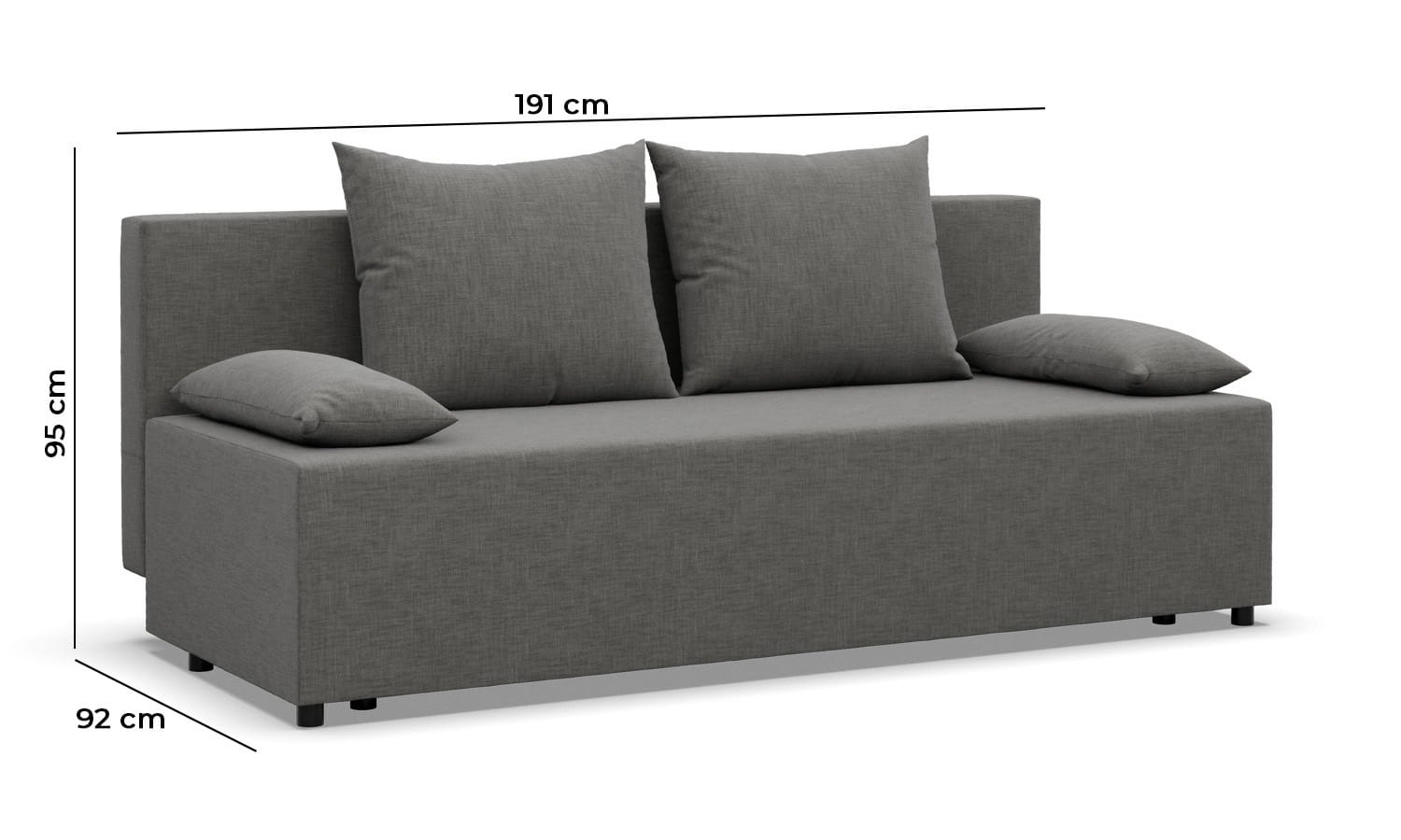 Kanapa została wyposażona w funkcję spania i praktyczny pojemnik do przechowywania, co szczególnie ważne jest w małych pomieszczeniach, aby zaoszczędzić miejsce. Dzięki solidnej konstrukcji i wysokiej jakości materiałów, mebel posłuży Ci przez wiele lat.