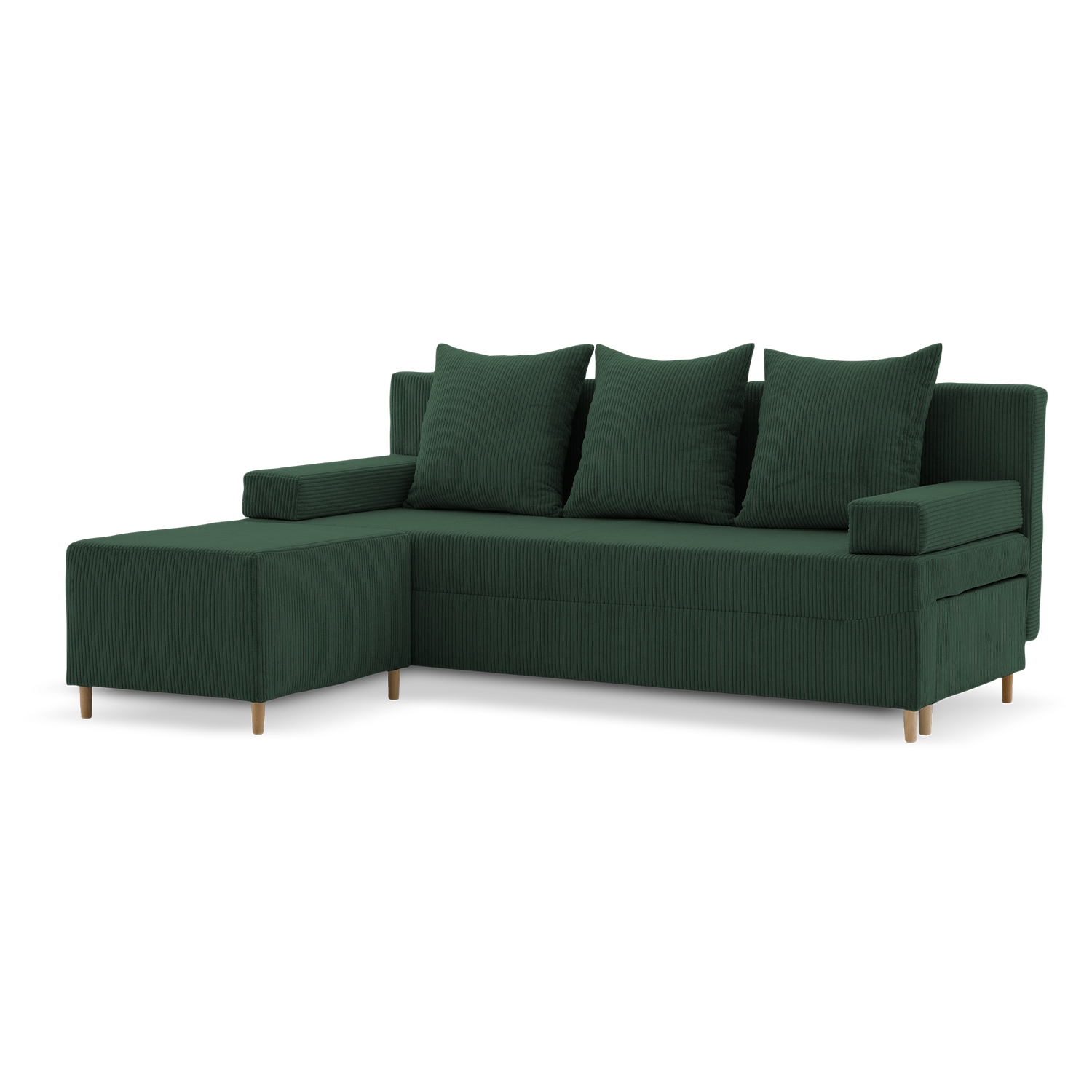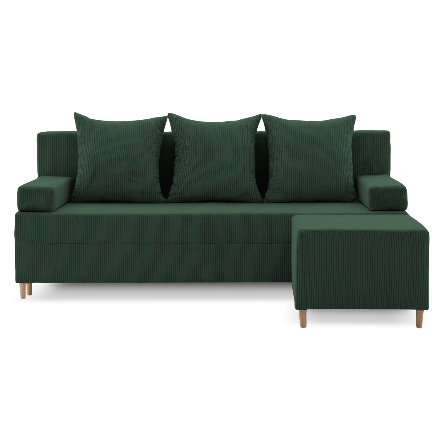 Kanapa z pufą, trzyosobowa, 3w1, sztruks, PANORA, 191x92x92 cm, butelkowa zieleń