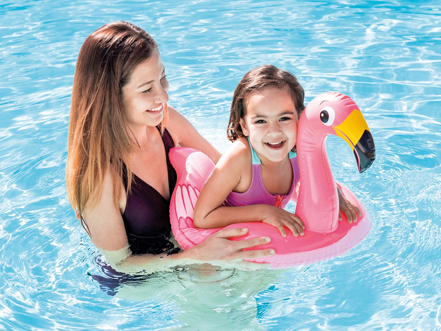 Kółko do pływania na basen, flaming, Intex, 76x55 cm, różowy. Koło jest bardzo praktyczne, wygodne i do tego świetnie prezentuje się na basenie czy plaży. Wykonane zostało z wytrzymałego PVC, odpornego na działanie słońca i słonej wody.