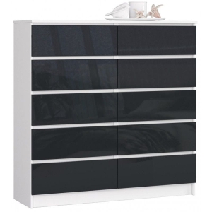 Komoda do salonu, sypialni, STILO, 10 szuflad, 120x40x121 cm, biel, grafit, połysk