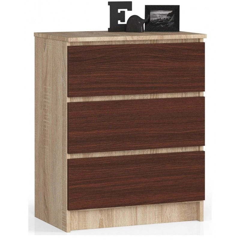 Komoda do sypialni, 3 szuflady, STILO, 60x40x77 cm, dąb sonoma, wenge, mat