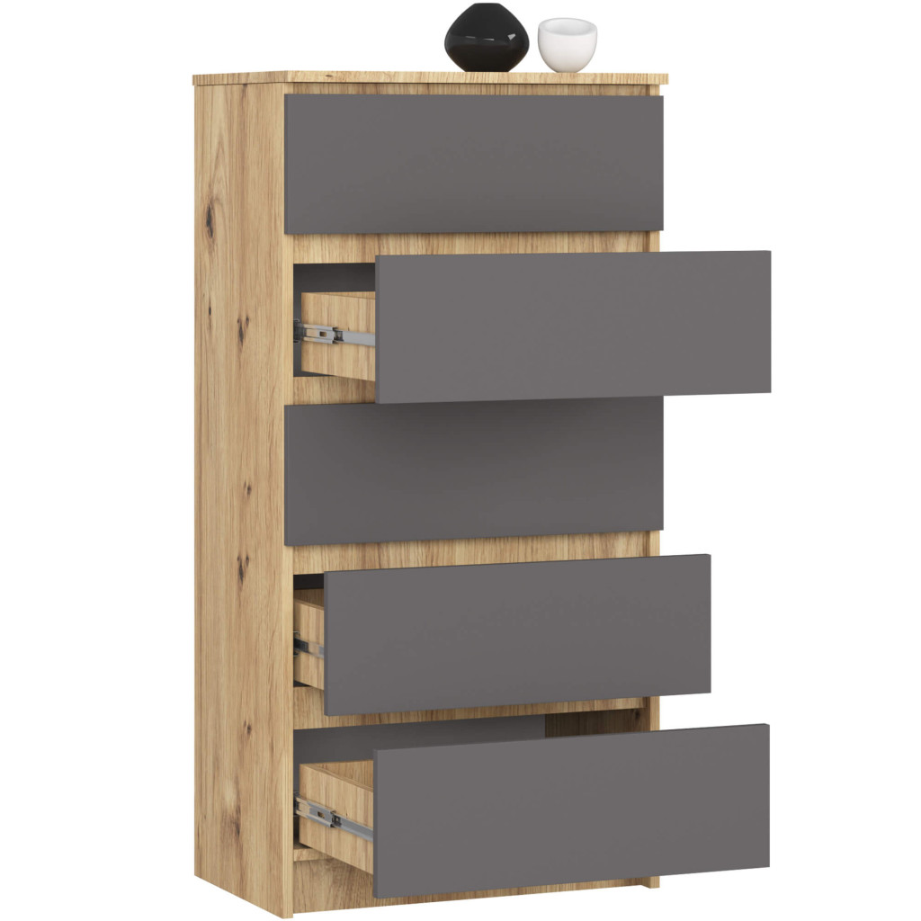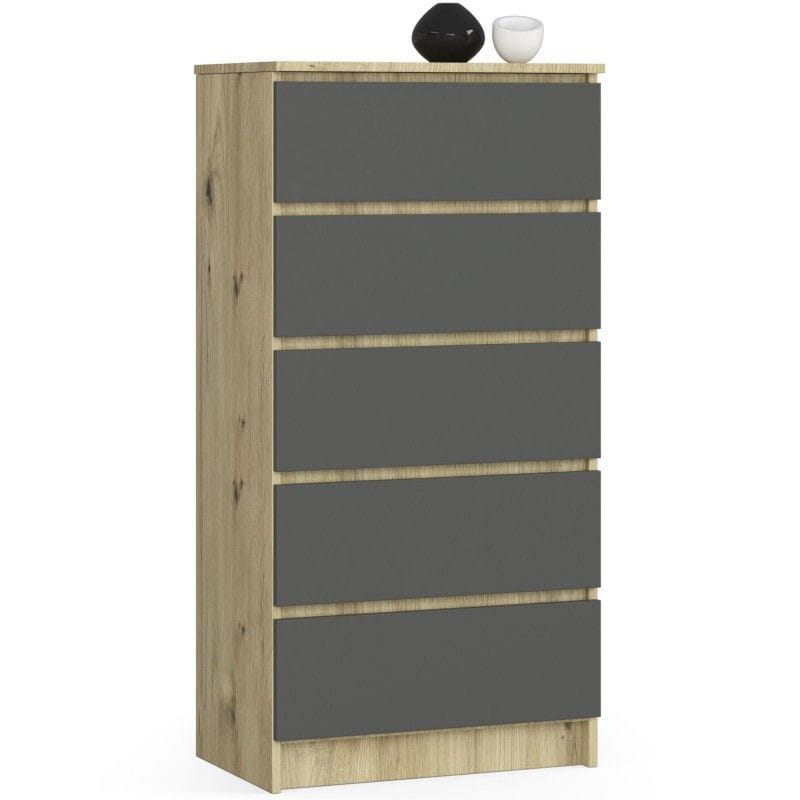 Komoda do sypialni, 5 szuflad, STILO, 60x40x121 cm, dąb artisan, grafit szary, mat