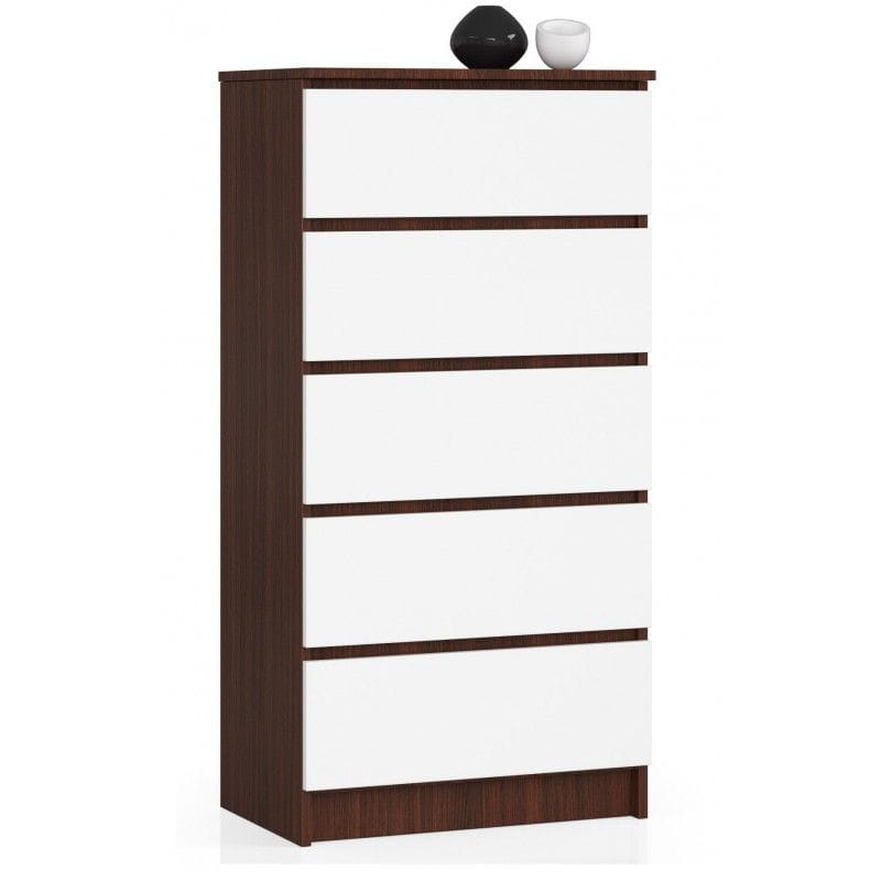 Komoda do sypialni, 5 szuflad, 60 cm. Klienci bardzo często szukają prostych, ponadczasowych, funkcjonalnych rozwiązań w atrakcyjnych cenach. Wychodząc naprzeciw ich oczekiwaniom, pragniemy zaproponować komodę wyposażoną w pięć szuflad. Mebel doskonale będzie pasował do tradycyjnego wystroju, jednak może zostać wykorzystany również w pomieszczeniach urządzonych w sposób nowoczesny. Wysoka i pojemna komoda to jedna z wielu interesujących propozycji naszego sklepu. Będzie nie tylko praktycznym, ale również pięknie prezentującym się elementem wystroju mieszkania lub biura.