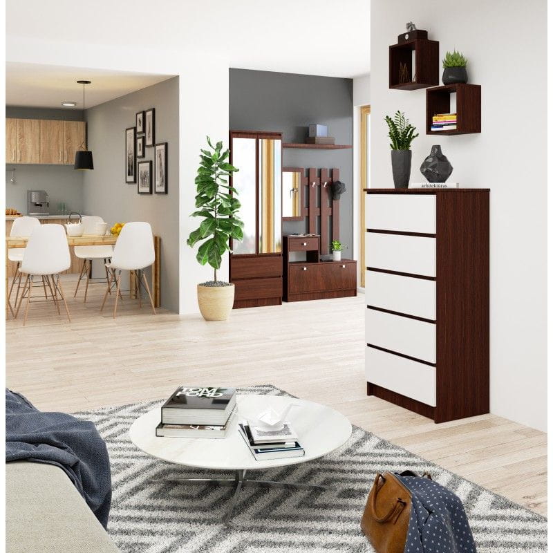 Komoda do sypialni, 5 szuflad, STILO, 60x40x121 cm, wenge, biel, mat