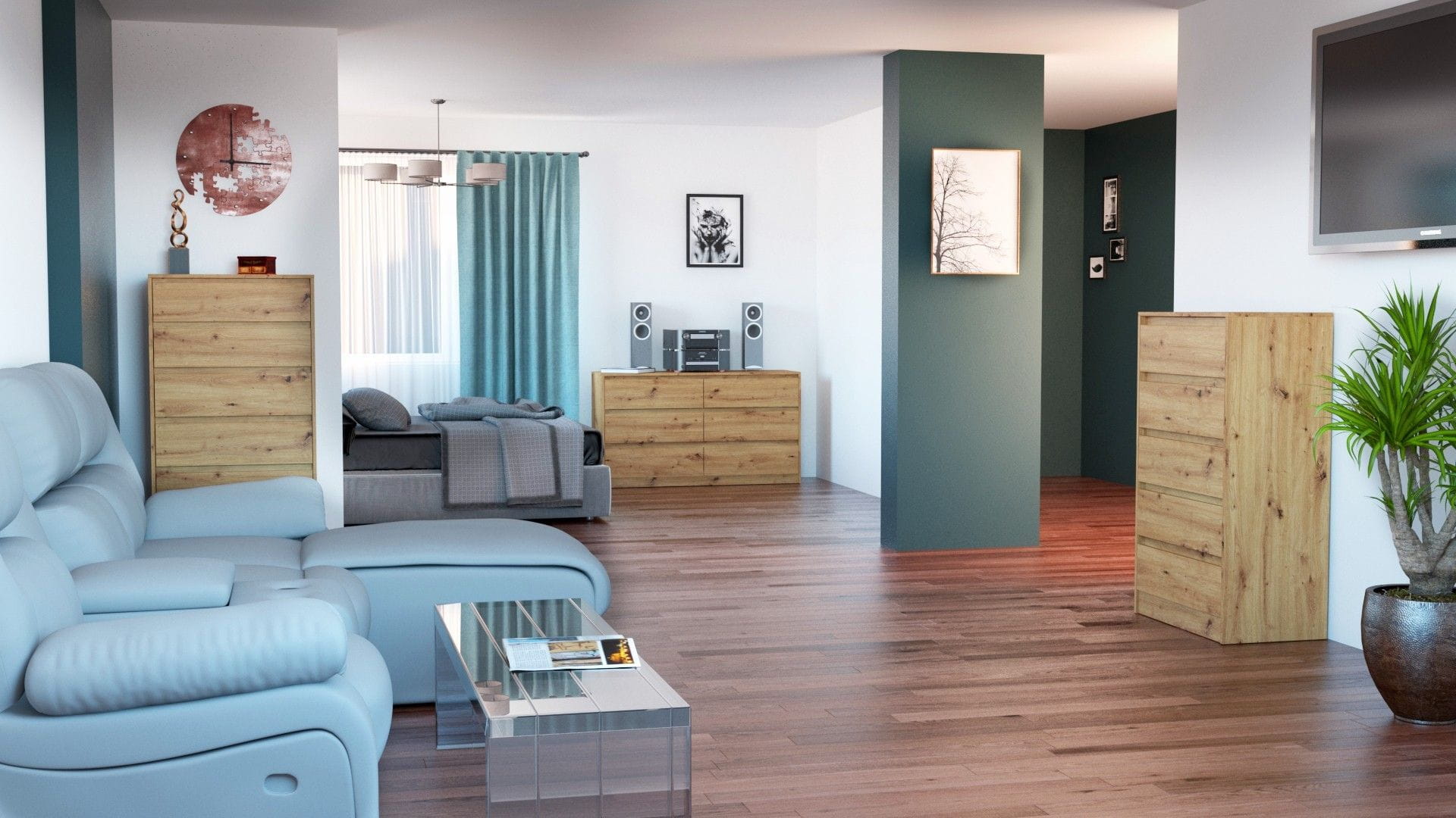 Komoda do sypialni, pokoju, K5, 70x43x124 cm, dąb artisan