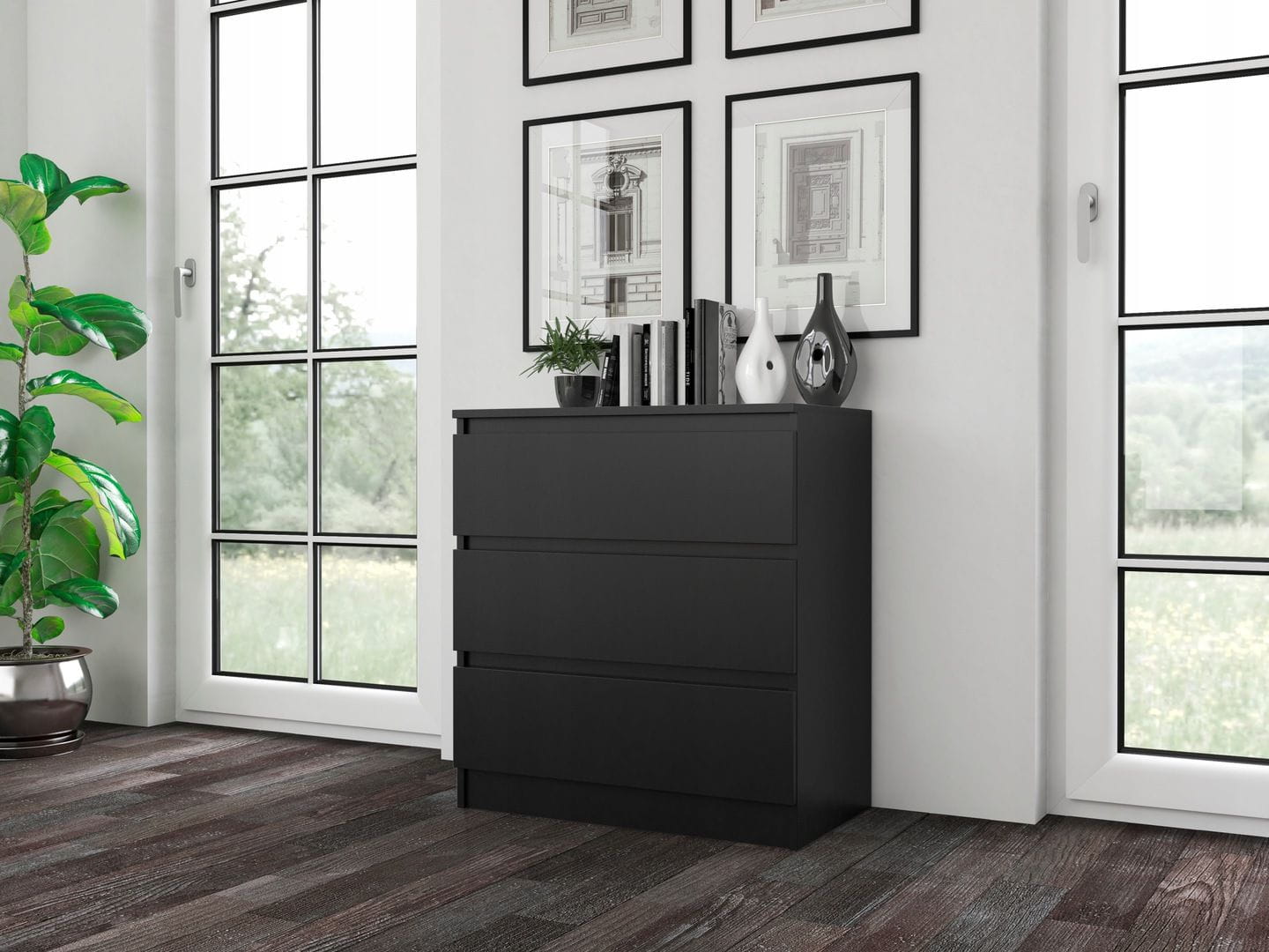 Komoda do sypialni, pokoju, M3, 70x40x77 cm, czerń, mat