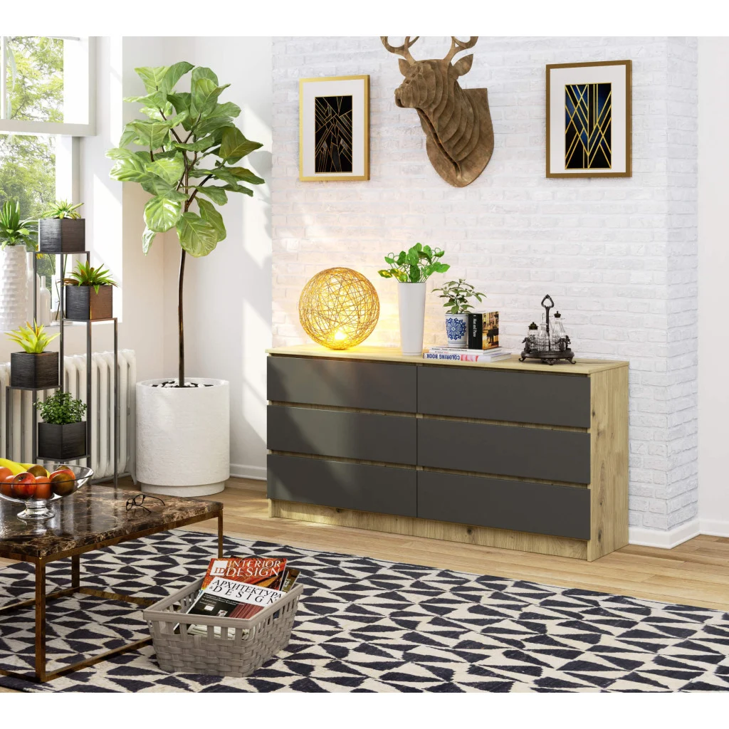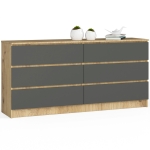 Komoda do sypialni, STILO, 6 szuflad, 160x40x77 cm, dąb artisan, grafit szary, mat