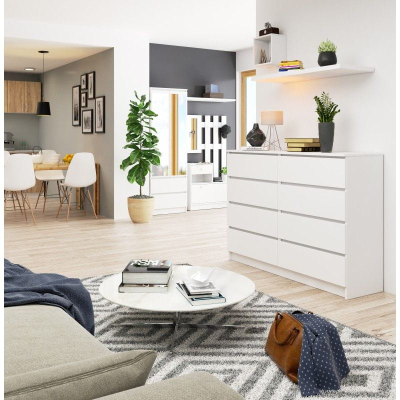 Komoda do sypialni, STILO, 8 szuflad, 140x40x99 cm, biel, mat
