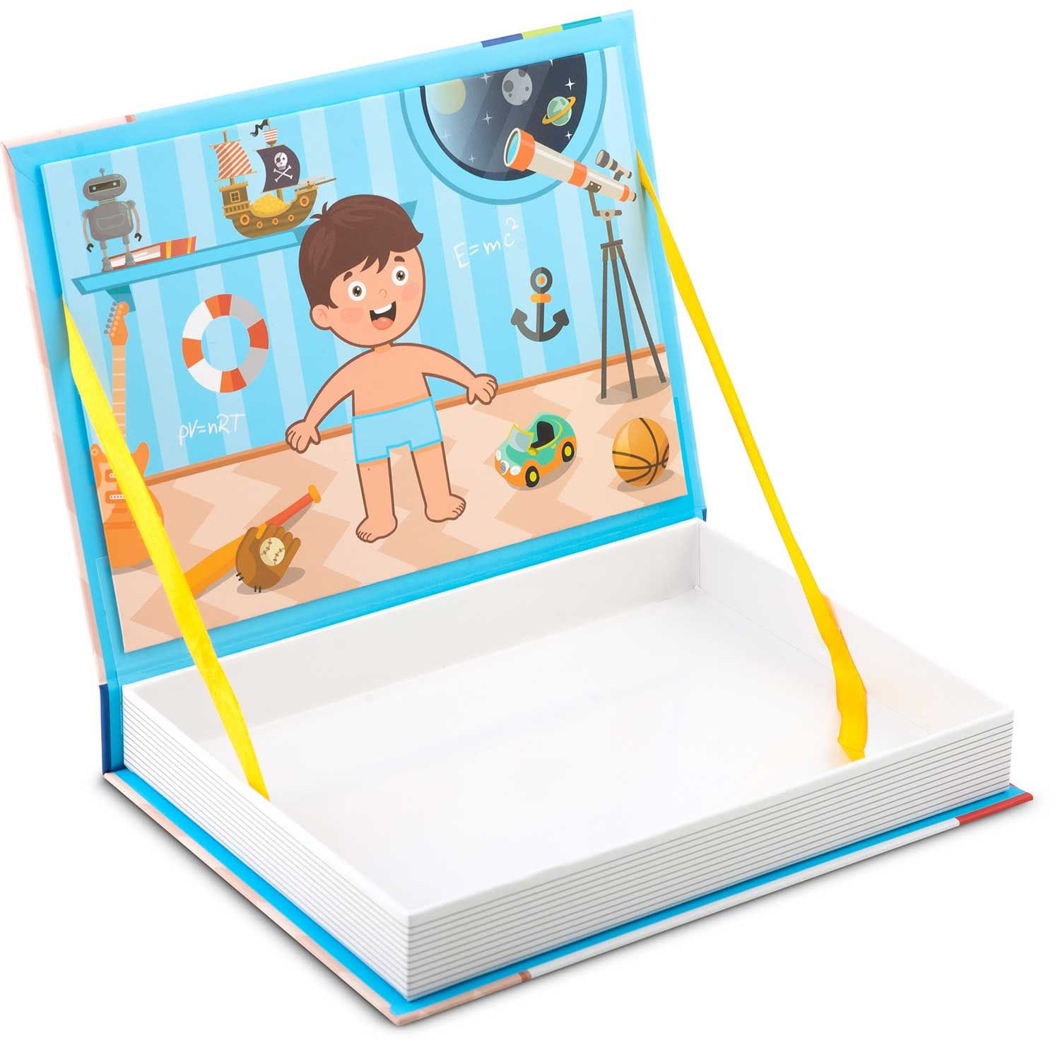 - Opakowanie zawiera magnetyczne tło do przyklejania elementów chłopięcej garderoby