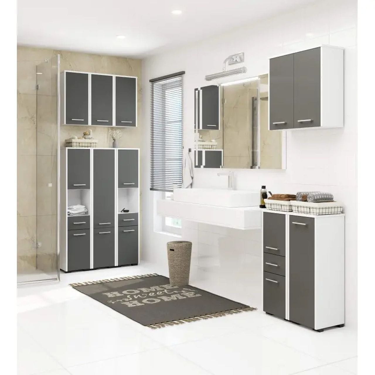 Mały regał łazienkowy, ELION, 30x30x85 cm, biel, grafit, mat
