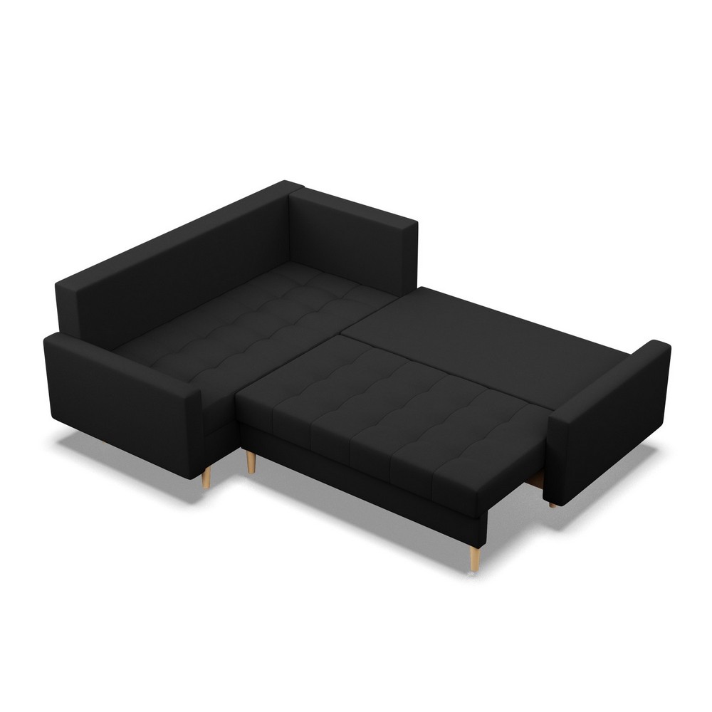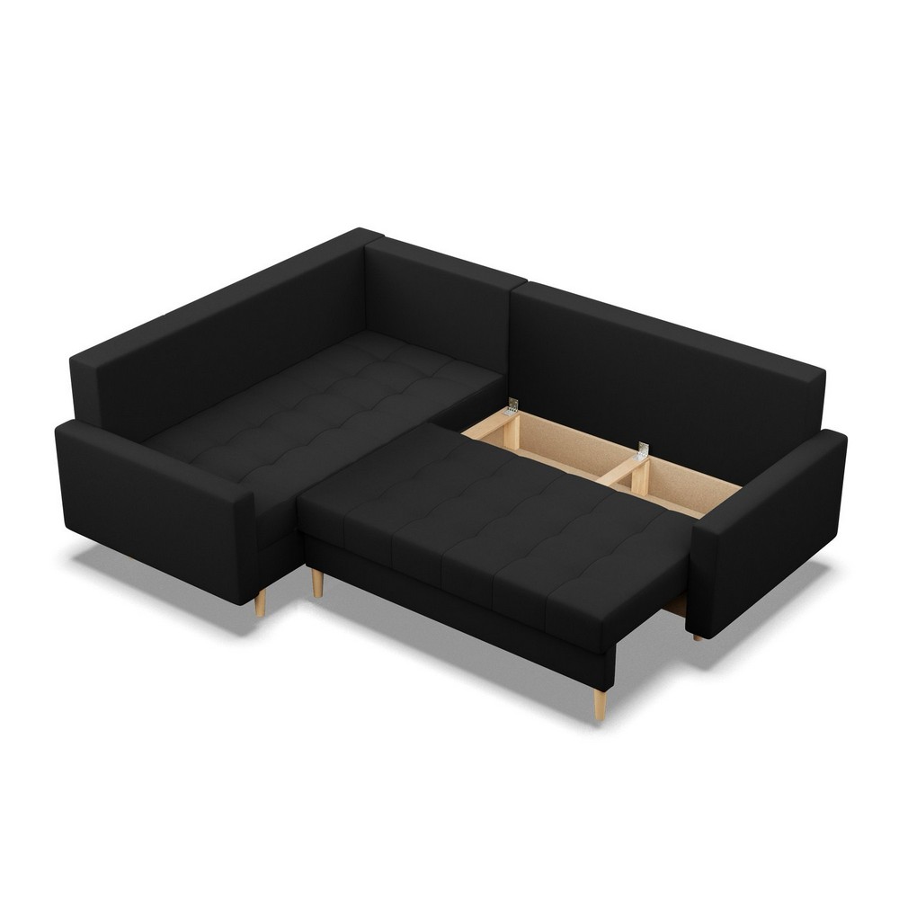 Narożnik na nóżkach, pikowany, lewy, NUBO, 233x172x92 cm, czarny