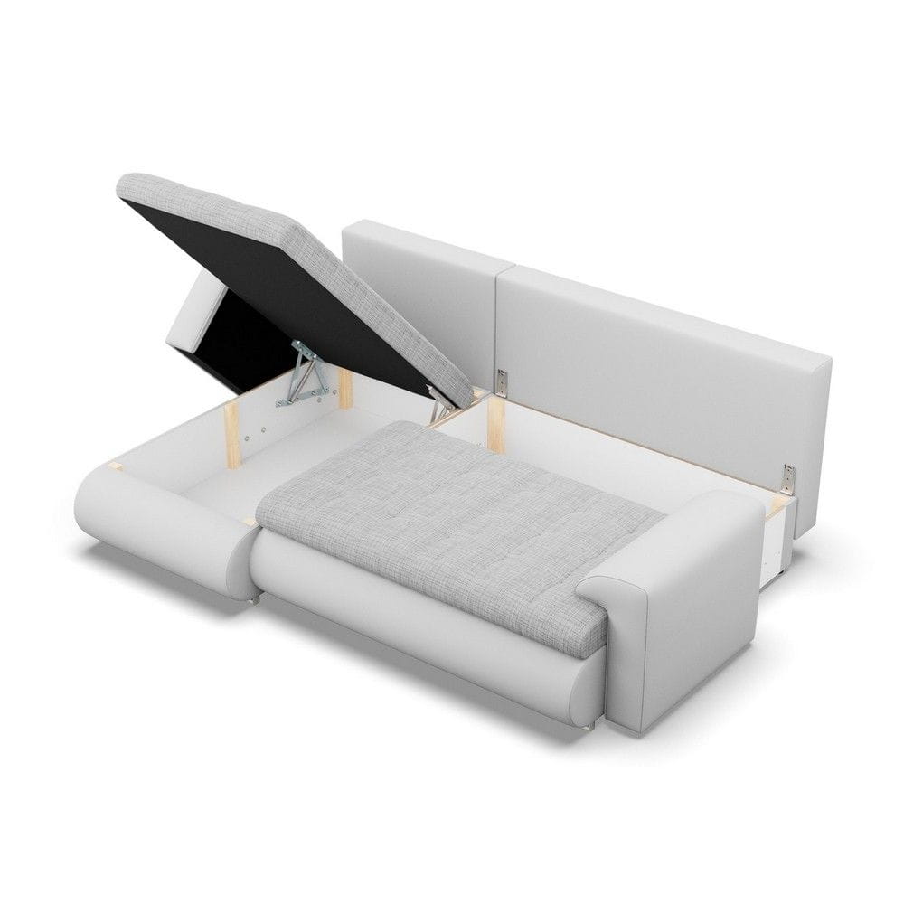 Narożnik rozkładany, lewy, Bosco, plecionka, ekoskóra, 230x159x89 cm, jasny szary, biały