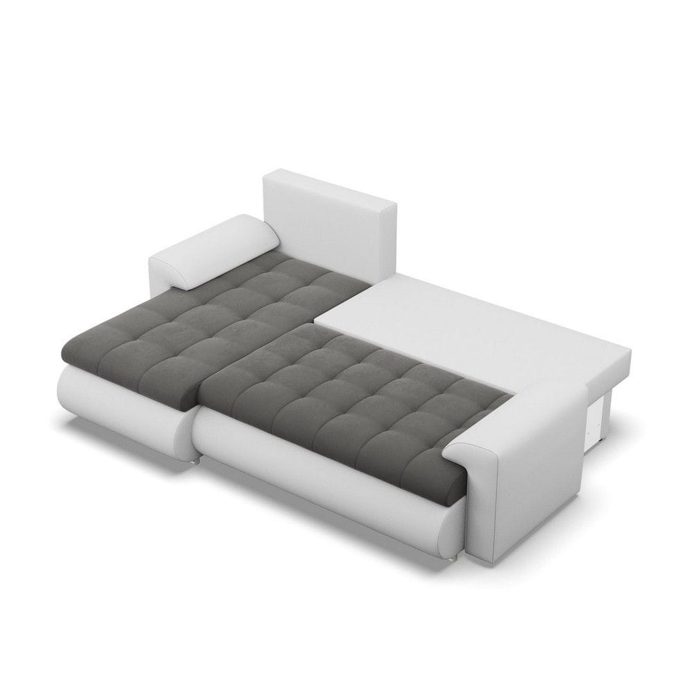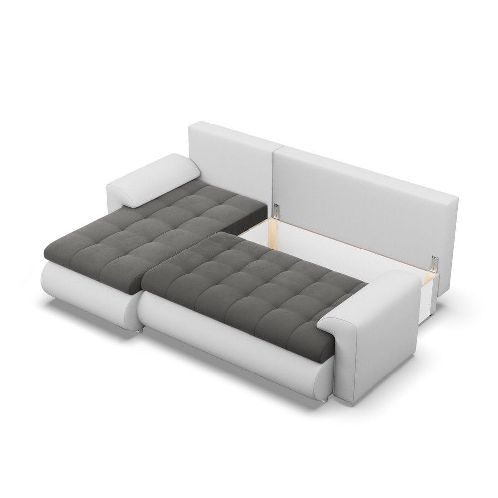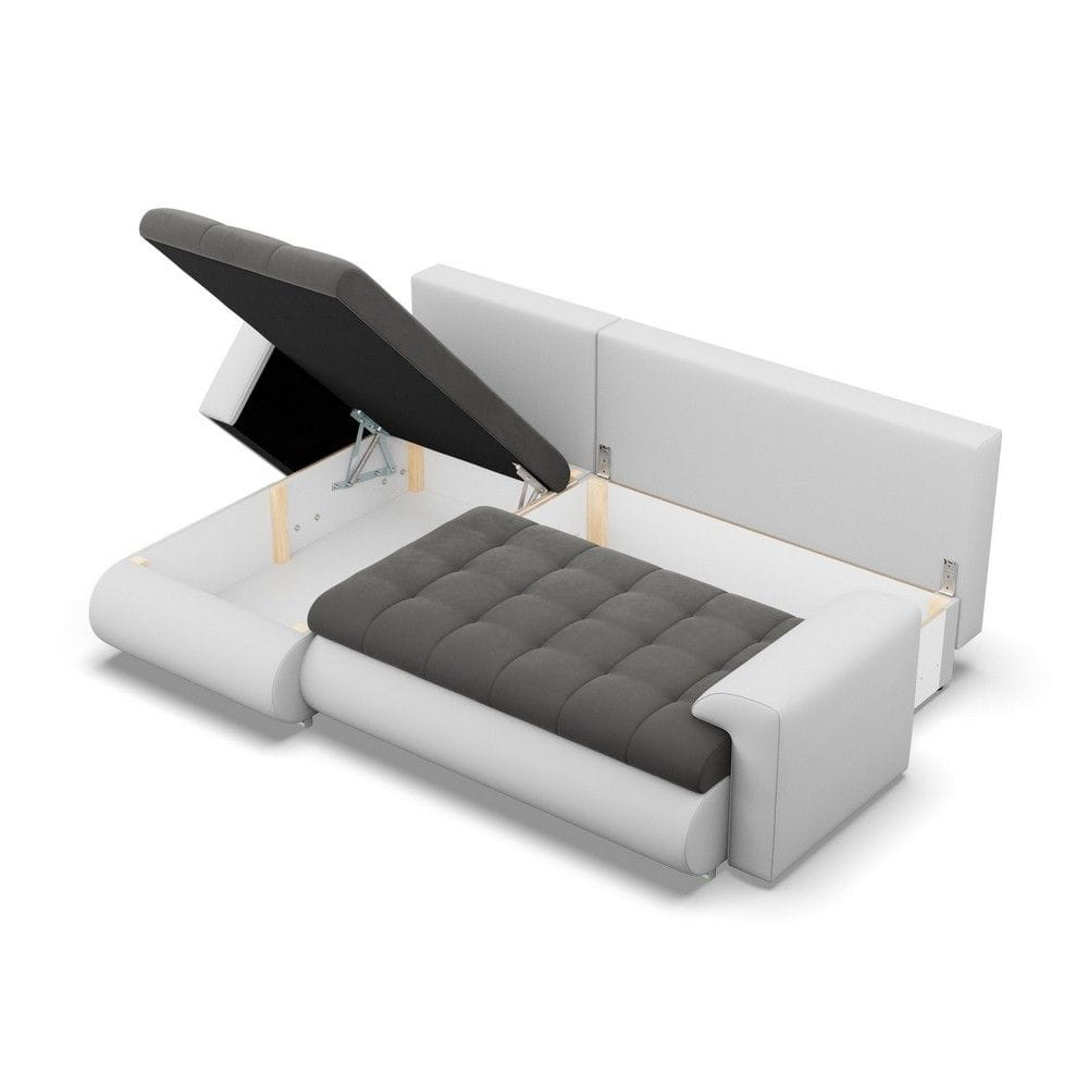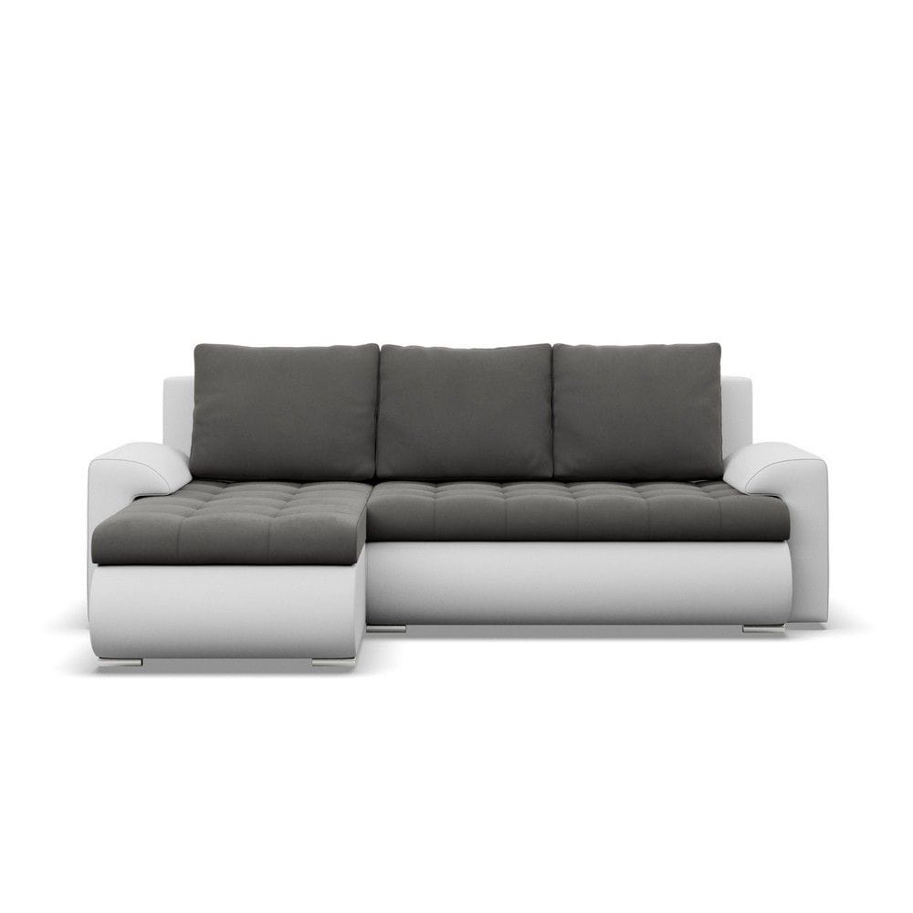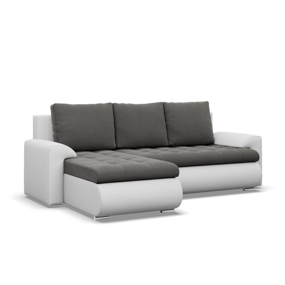 Narożnik rozkładany, lewy, Bosco, velvet, ekoskóra, 230x159x89 cm, ciemny szary, biały