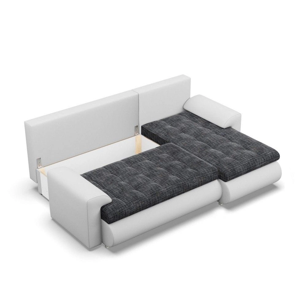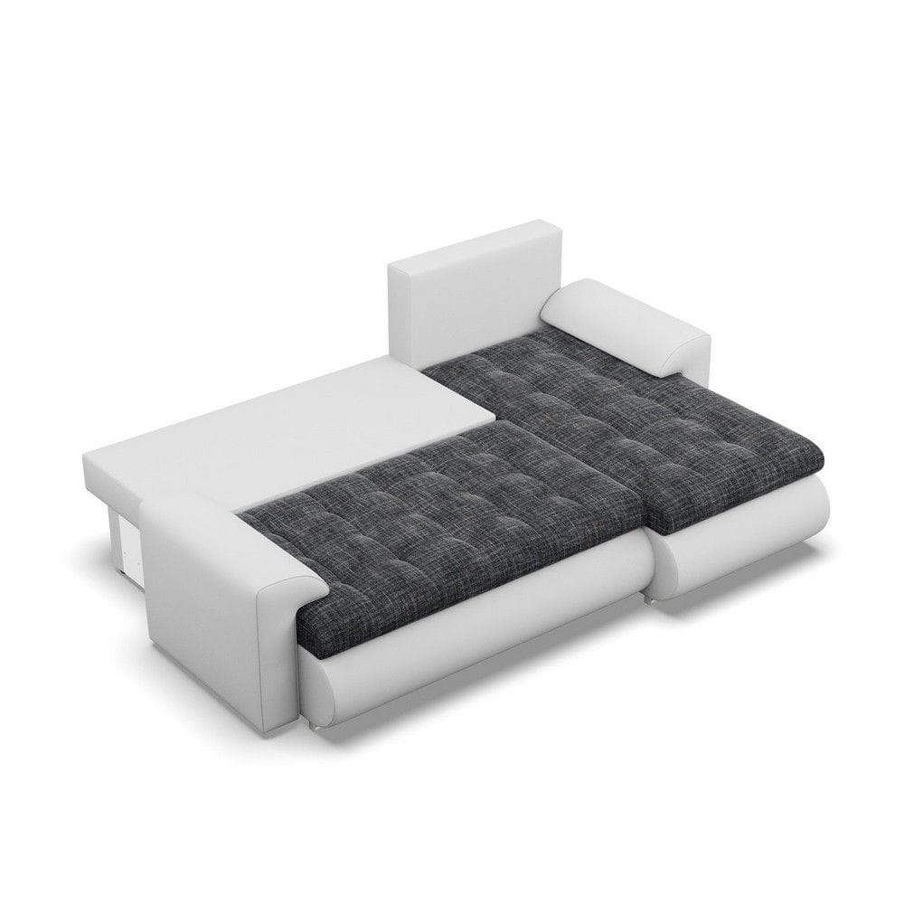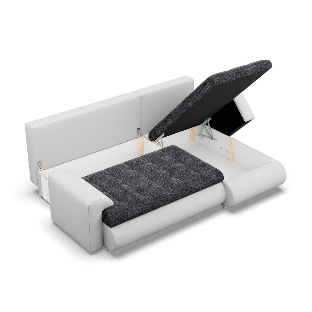 Narożnik rozkładany, prawy, Bosco, plecionka, ekoskóra, 230x159x89 cm, ciemny szary, biały