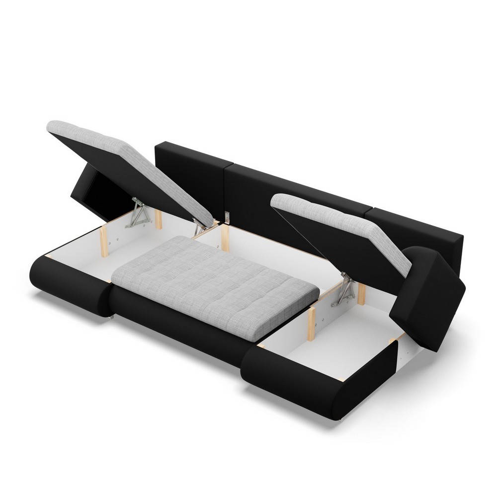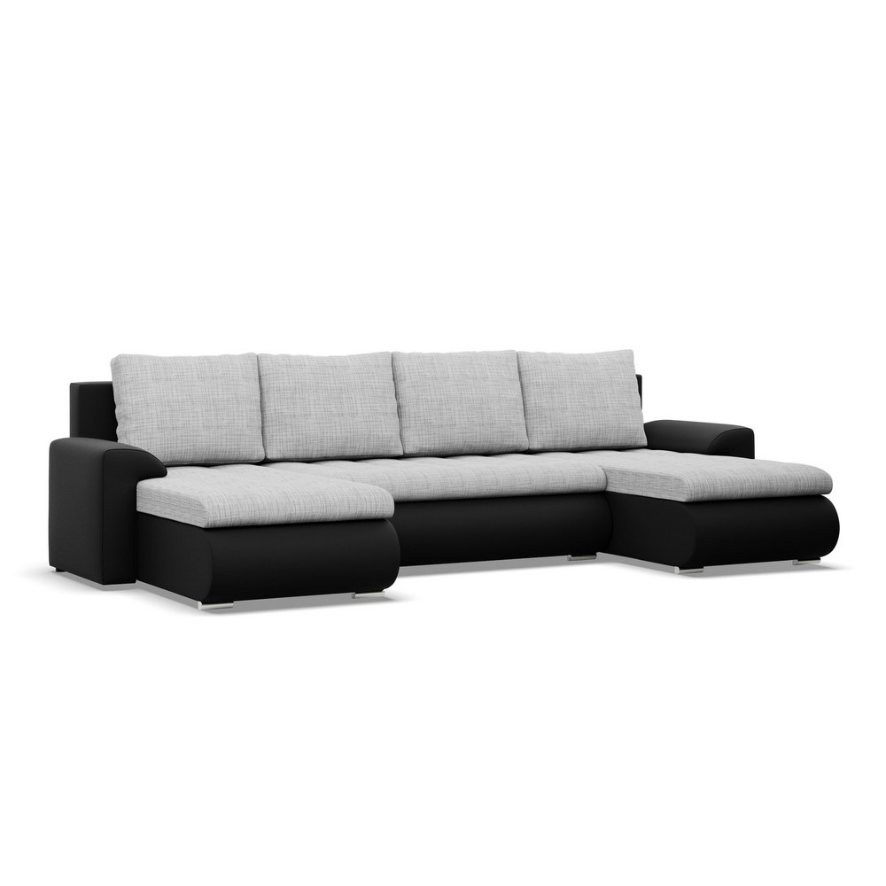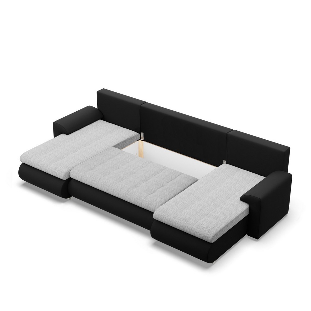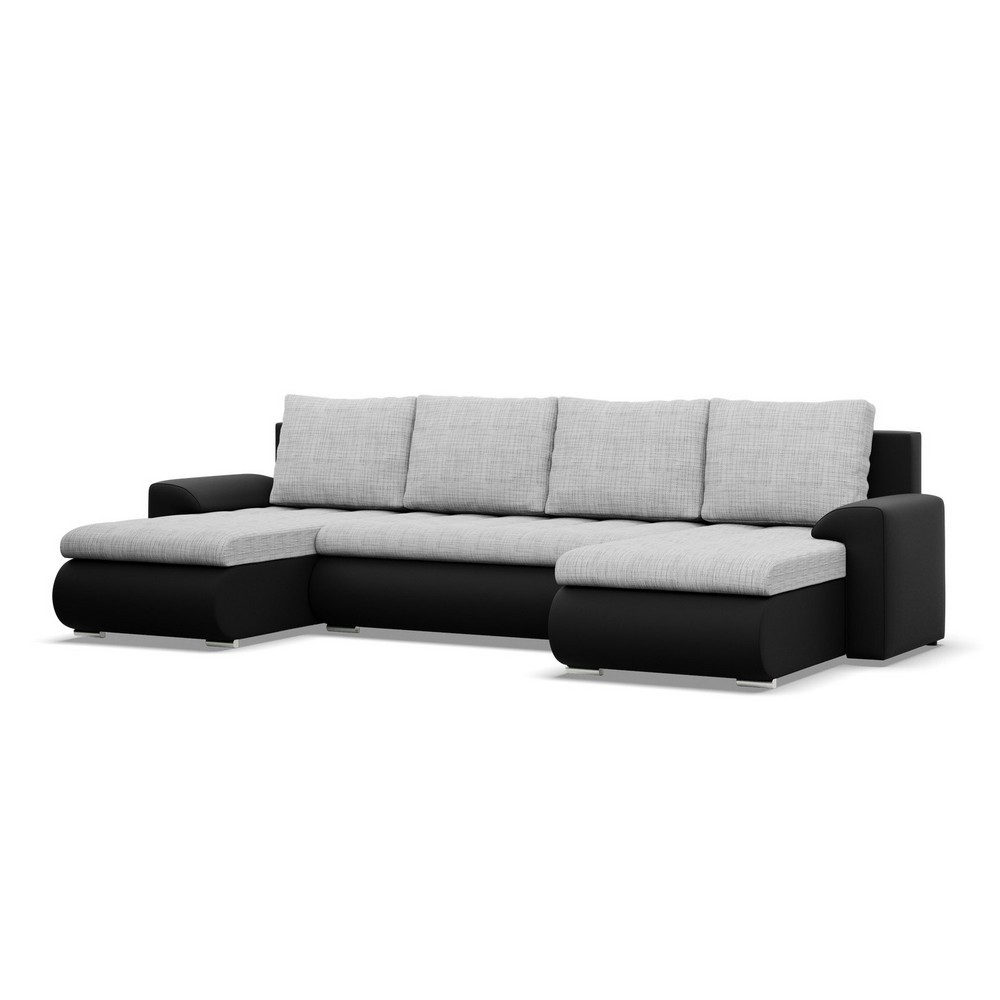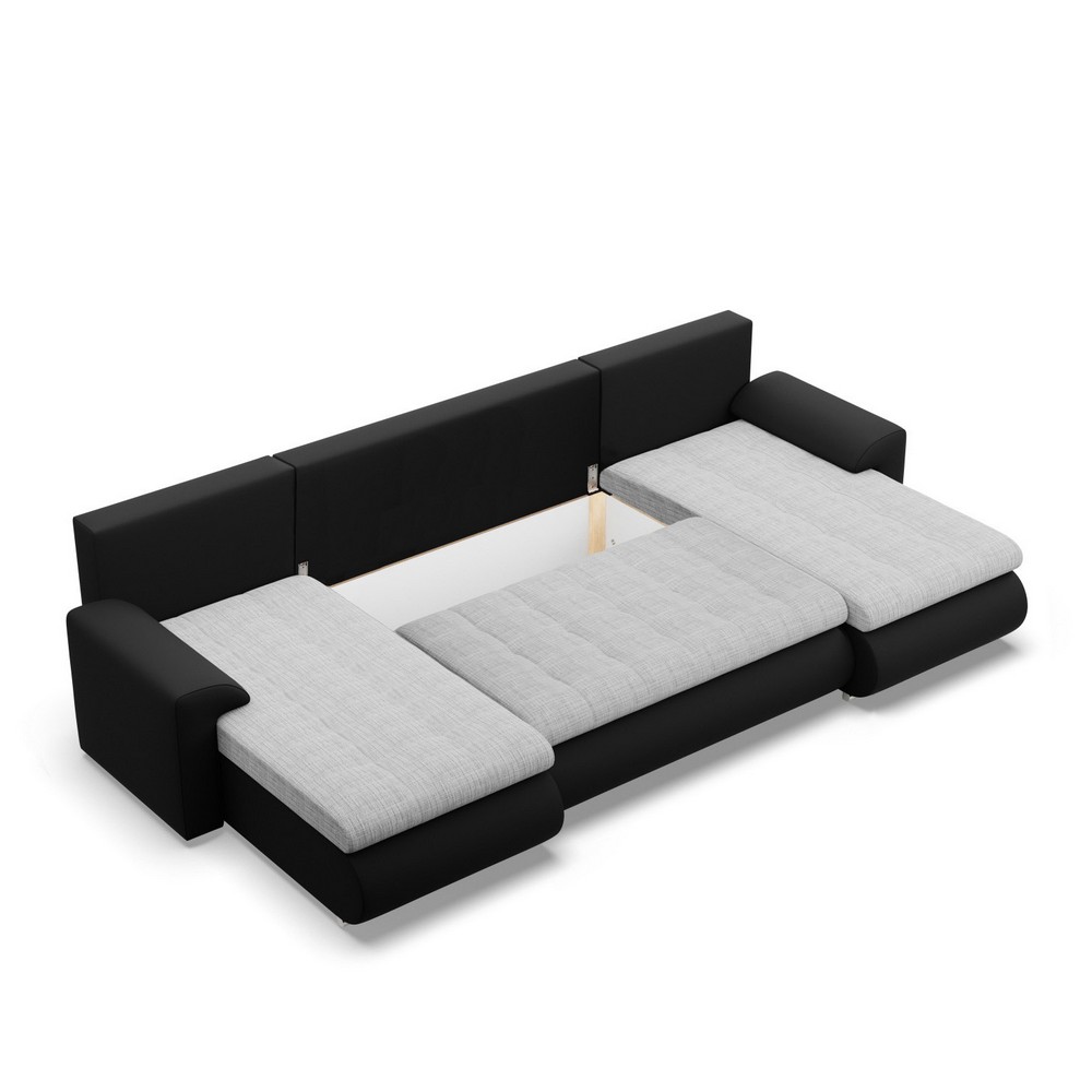 Narożnik U, z leżankami, BOSCO, ekoskóra, plecionka, 302x159x89 cm, czarny, jasny szary