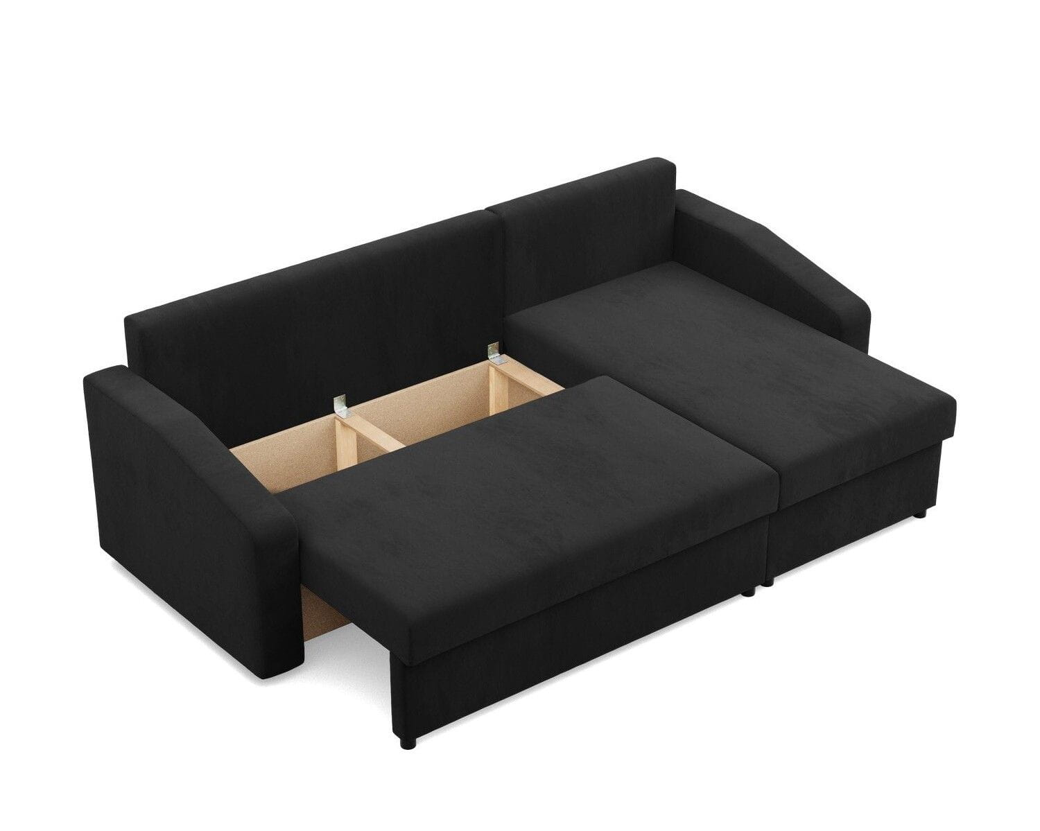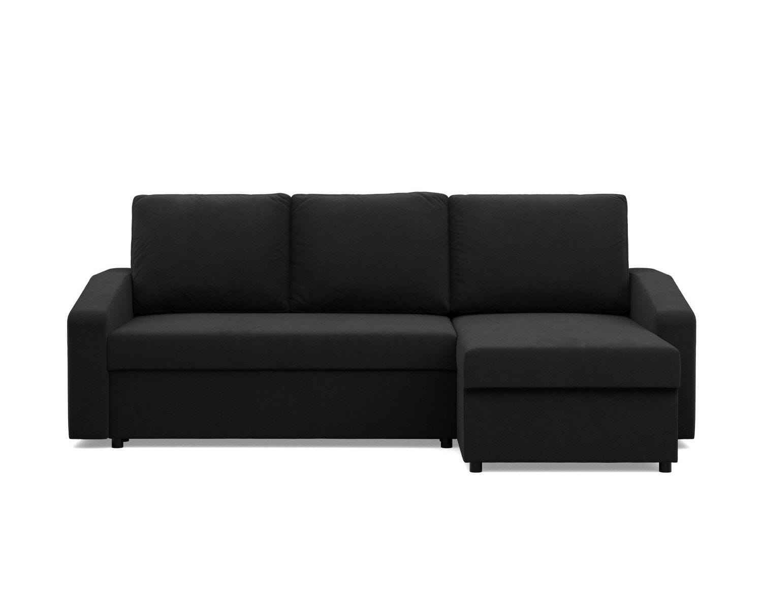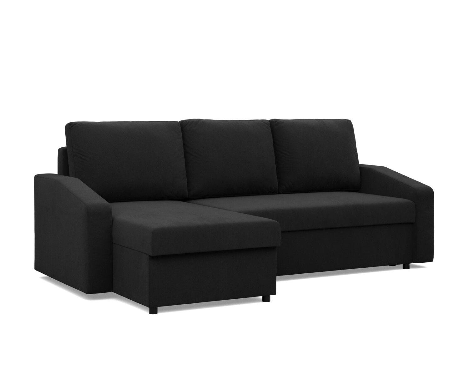 Narożnik uniwersalny, BLOM, Mikrofaza, 231x140x85 cm, czarny. Szukasz minimalistycznego narożnika, który w łatwy i szybki sposób zmieni się w komfortowe miejsce do snu? Narożnik BLOM to mebel, który zapewnia komfort użytkowania oraz stabilność konstrukcyjną. Dodatkowym atutem narożnika jest funkcja spania, dzięki czemu produkt sprawdzi się jako mebel do użytku codziennego lub jako wygodne łóżko dla gości.