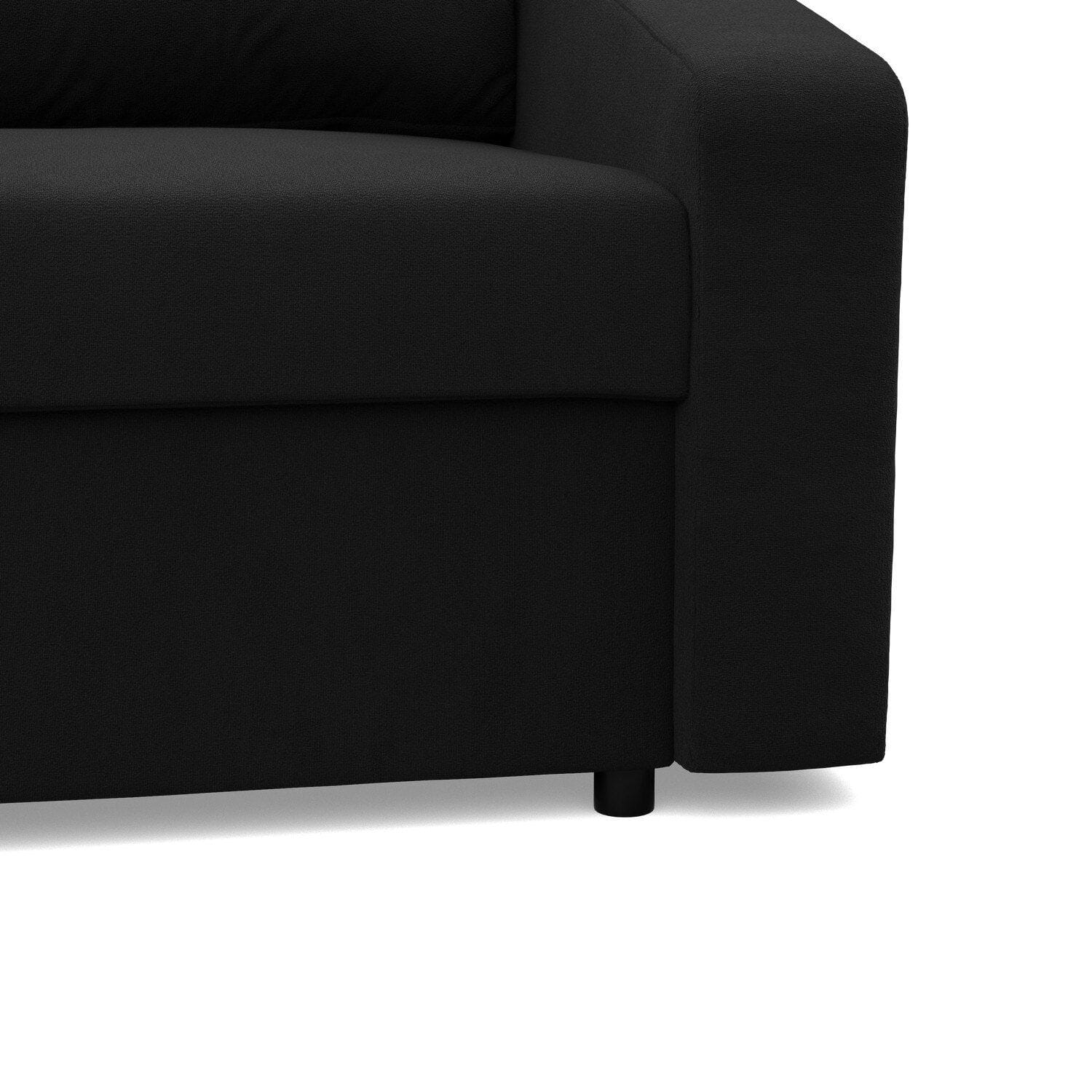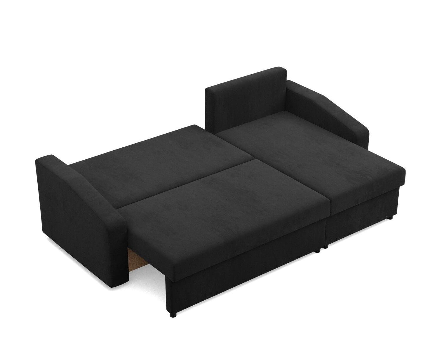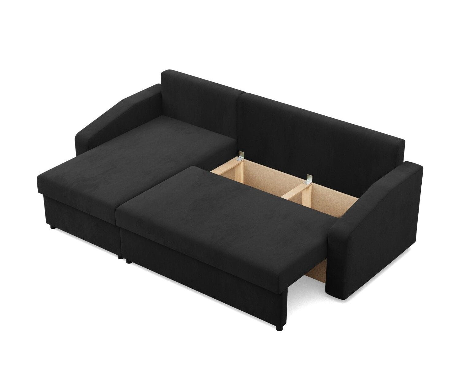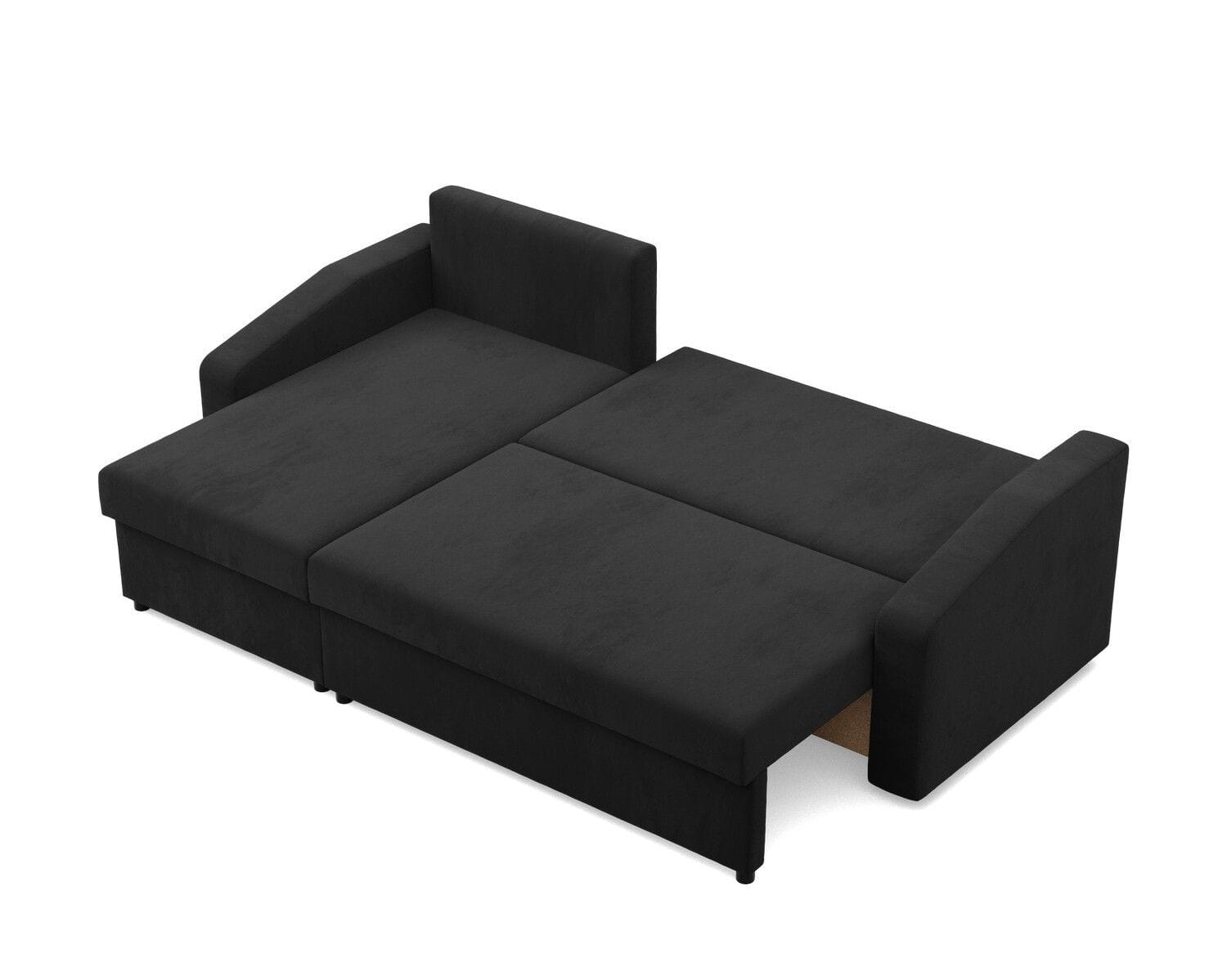 Narożnik uniwersalny, BLOM, Mikrofaza, 231x140x85 cm, czarny. Szukasz minimalistycznego narożnika, który w łatwy i szybki sposób zmieni się w komfortowe miejsce do snu? Narożnik BLOM to mebel, który zapewnia komfort użytkowania oraz stabilność konstrukcyjną. Dodatkowym atutem narożnika jest funkcja spania, dzięki czemu produkt sprawdzi się jako mebel do użytku codziennego lub jako wygodne łóżko dla gości.