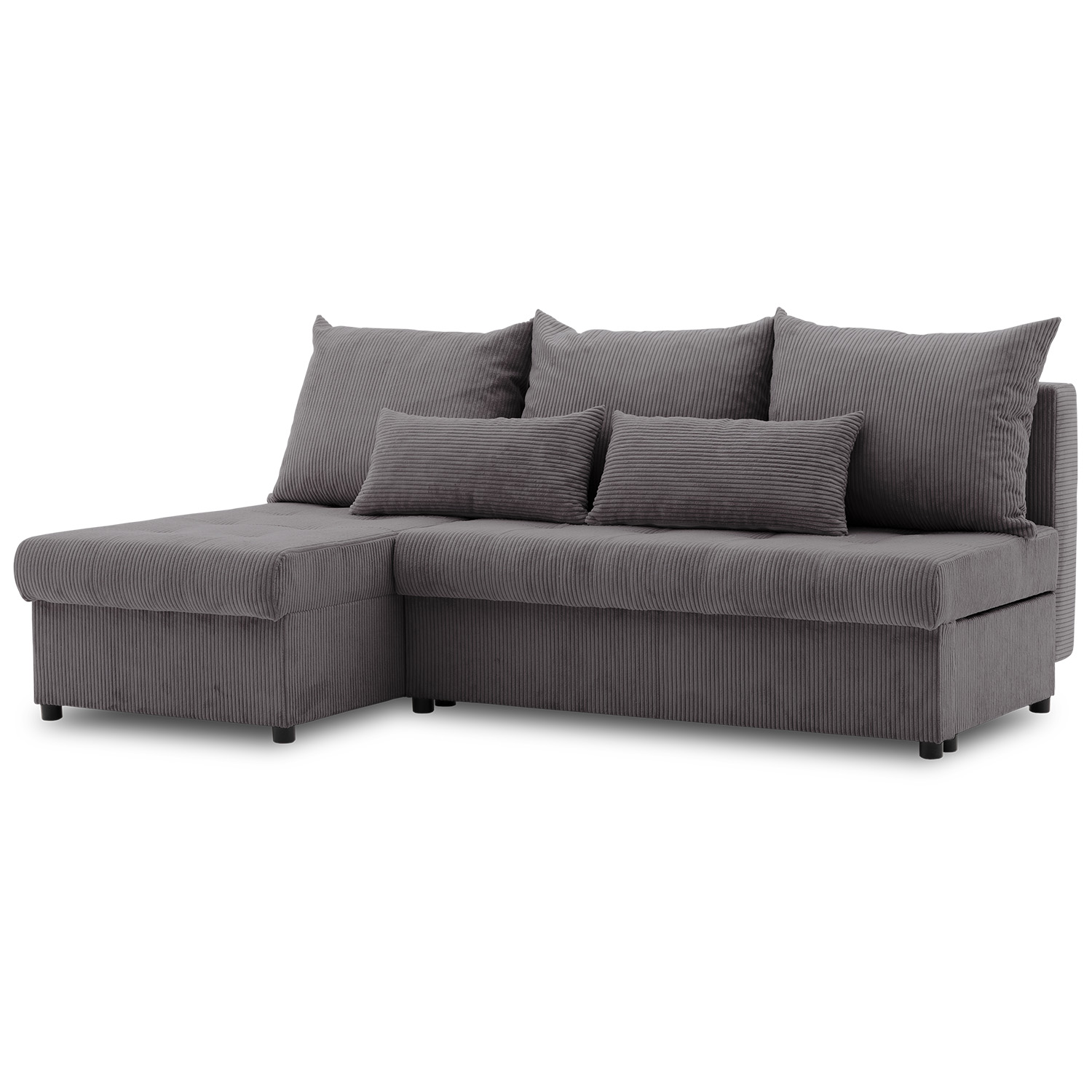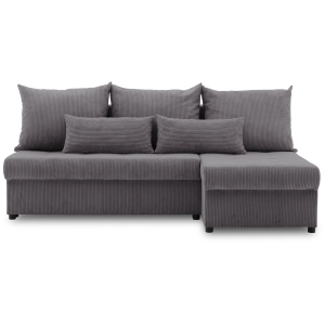 Narożnik uniwersalny, sztruksowy, LUMARO, 203x142x75 cm, ciemny szary. Narożnik rozkładany, który pokrywa trwała, przyjemna w dotyku tkanina łącząca w sobie komfort i elegancję. Dzięki starannie dobranym materiałom i dbałości o detale, dedykowana kanapa narożna stanie się centralnym elementem Twojego wnętrza, dodając mu wyjątkowego uroku.