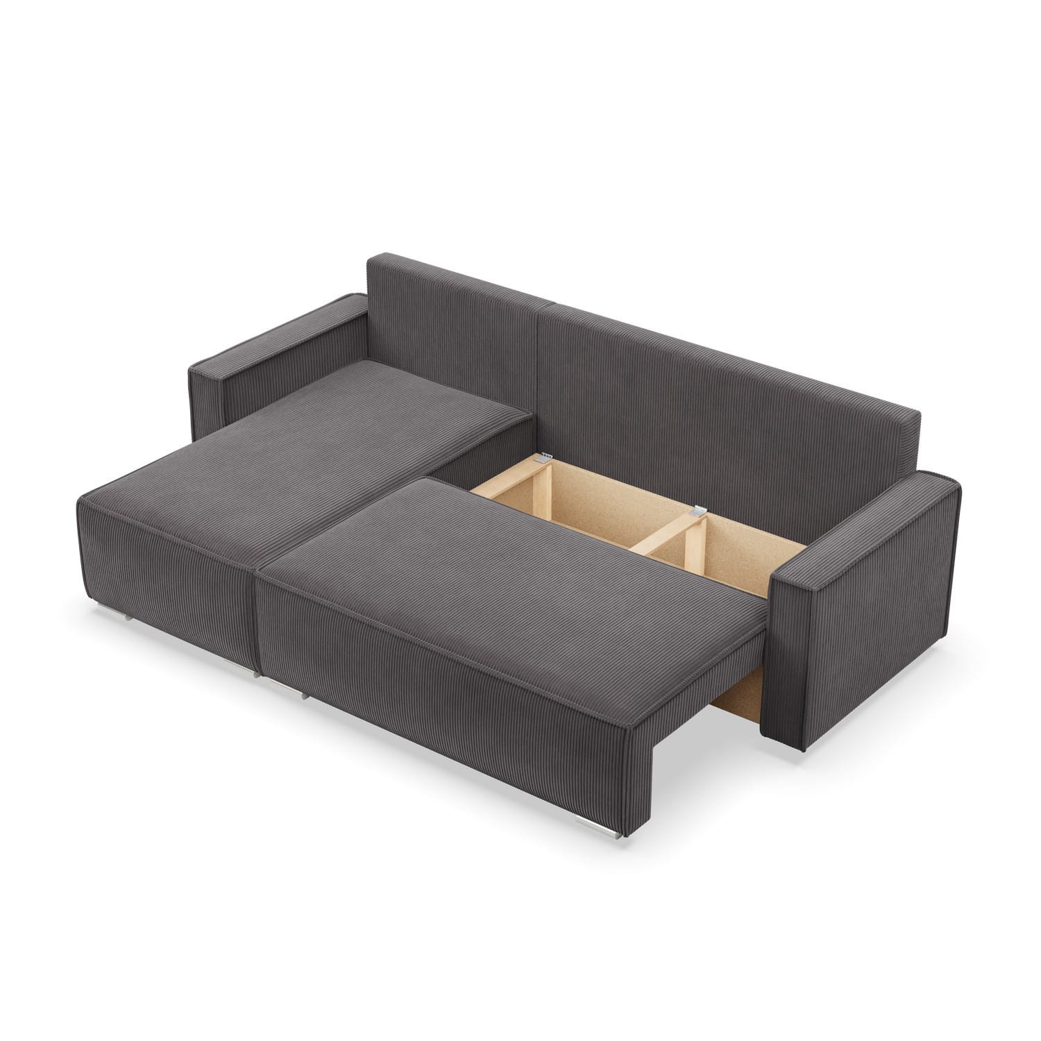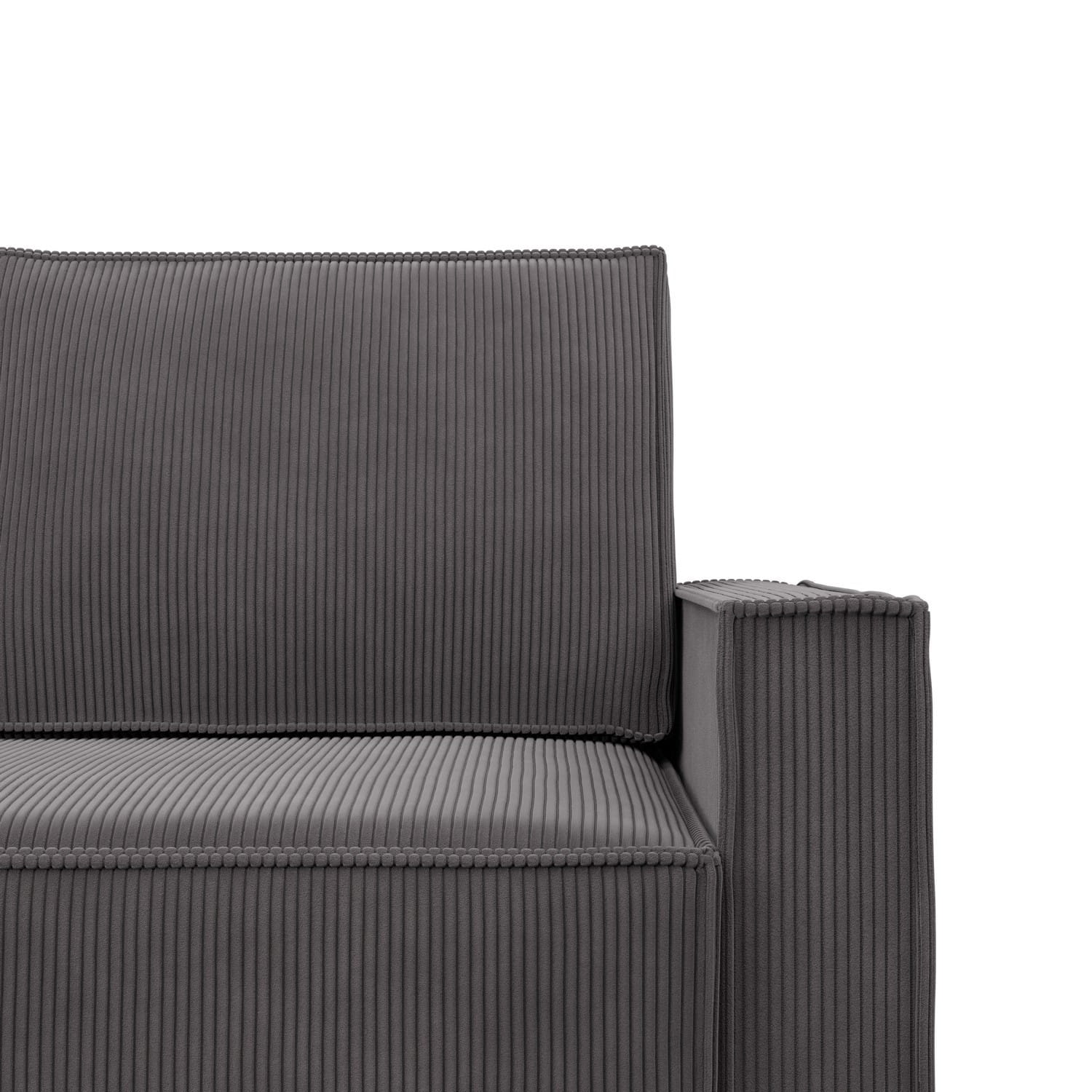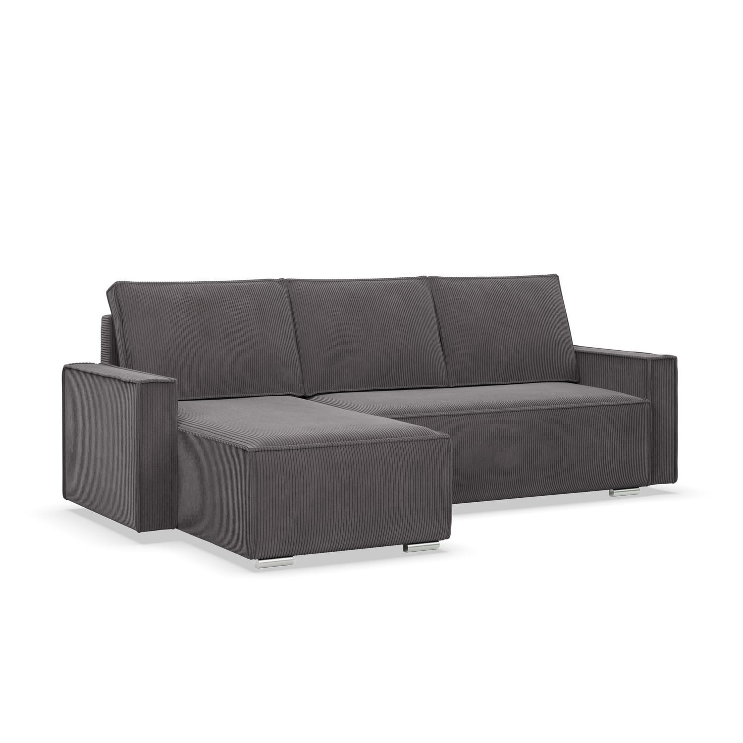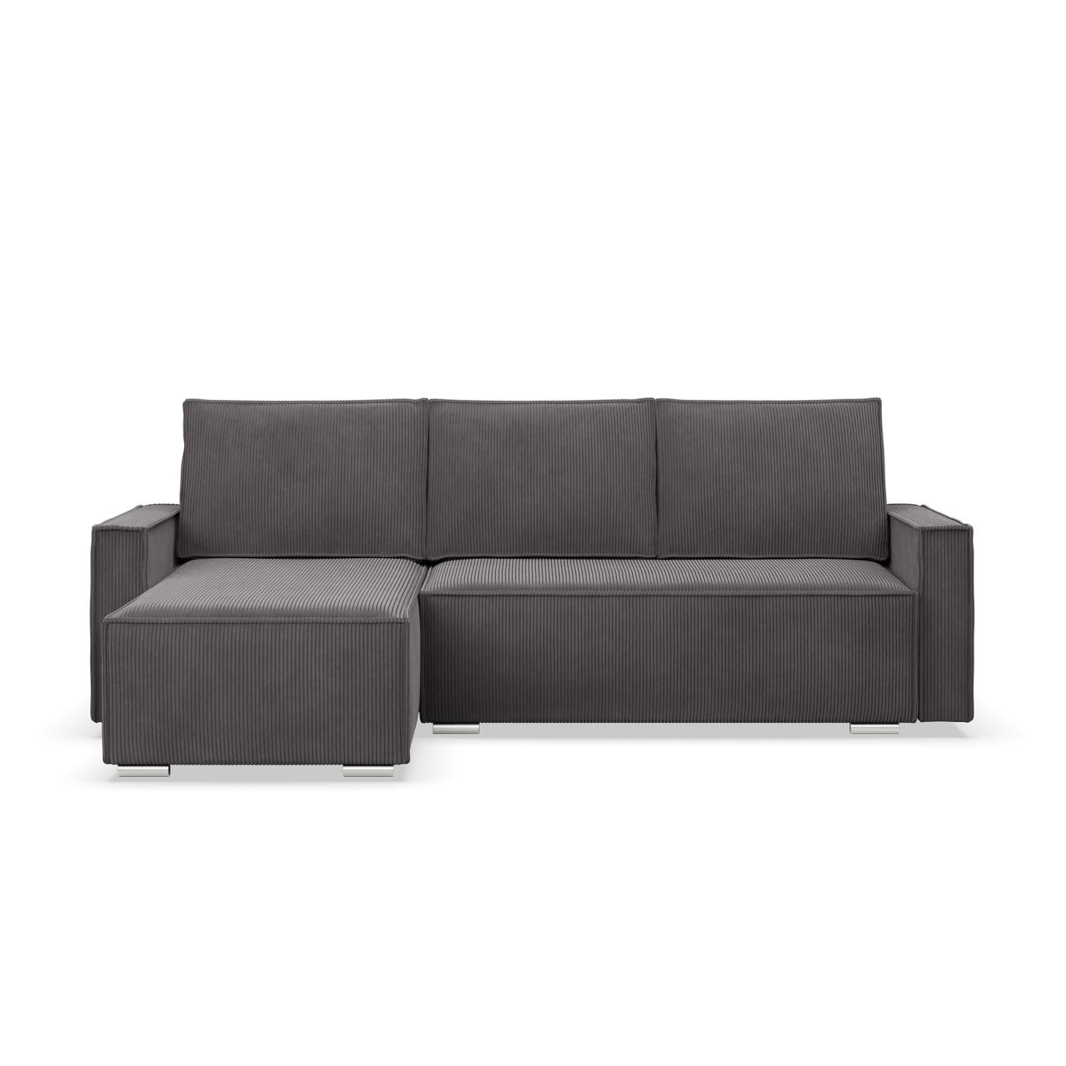 Narożnik z funkcją spania, sztruks, Union, 231x142x92 cm, ciemny szary