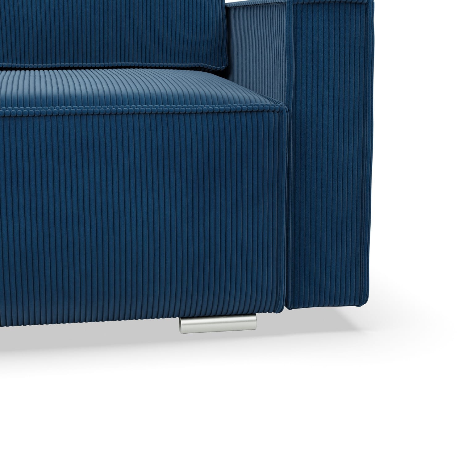 Narożnik z funkcją spania, sztruks, Union, 231x142x92 cm, granatowy. Narożnik rozkładany, który pokrywa trwała, przyjemna w dotyku tkanina łącząca w sobie komfort i elegancję. Dzięki starannie dobranym materiałom i dbałości o detale, dedykowana kanapa narożna stanie się centralnym elementem Twojego wnętrza, dodając mu wyjątkowego uroku.