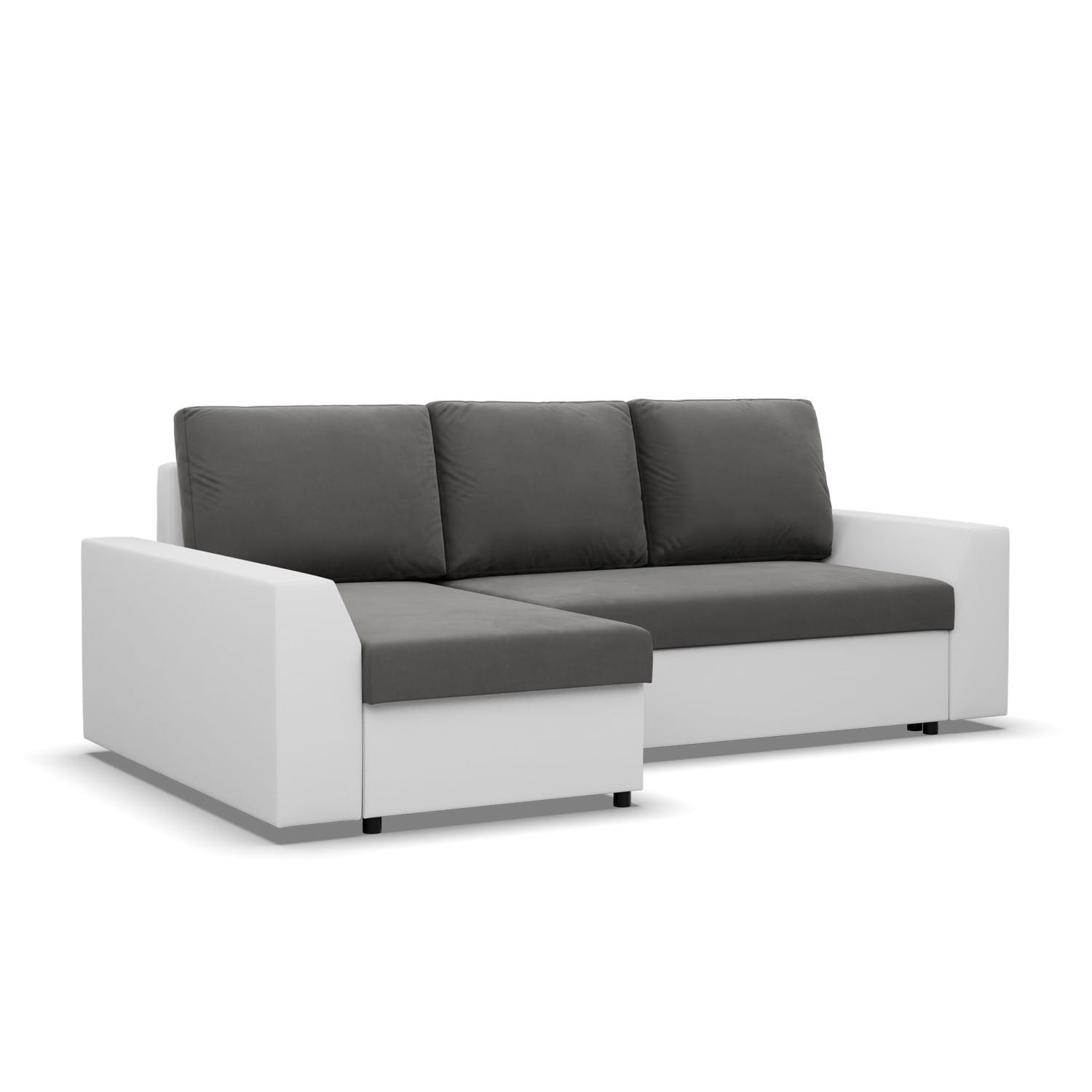 Narożnik z funkcją spania, Viktor, velvet, ekoskóra, 243x140x92 cm, biel, szary