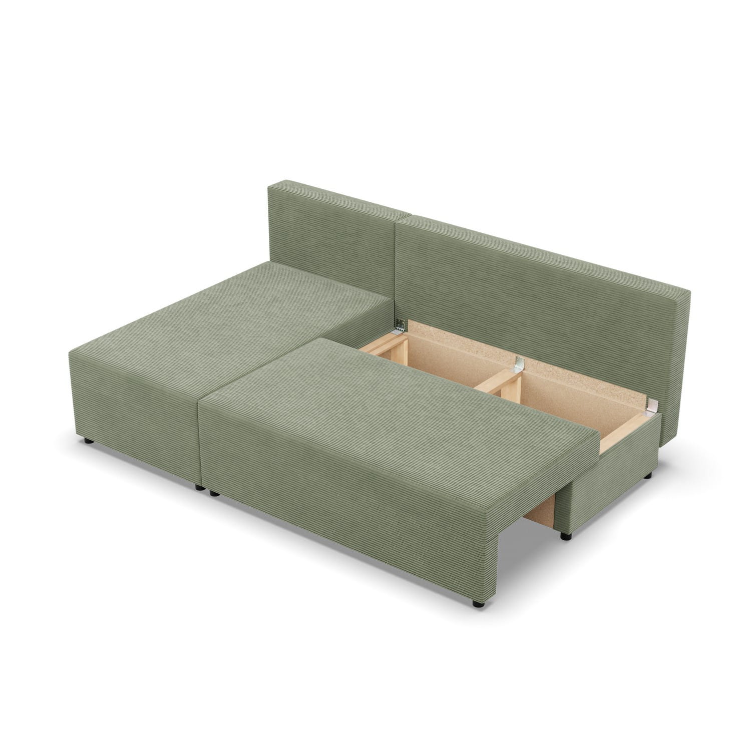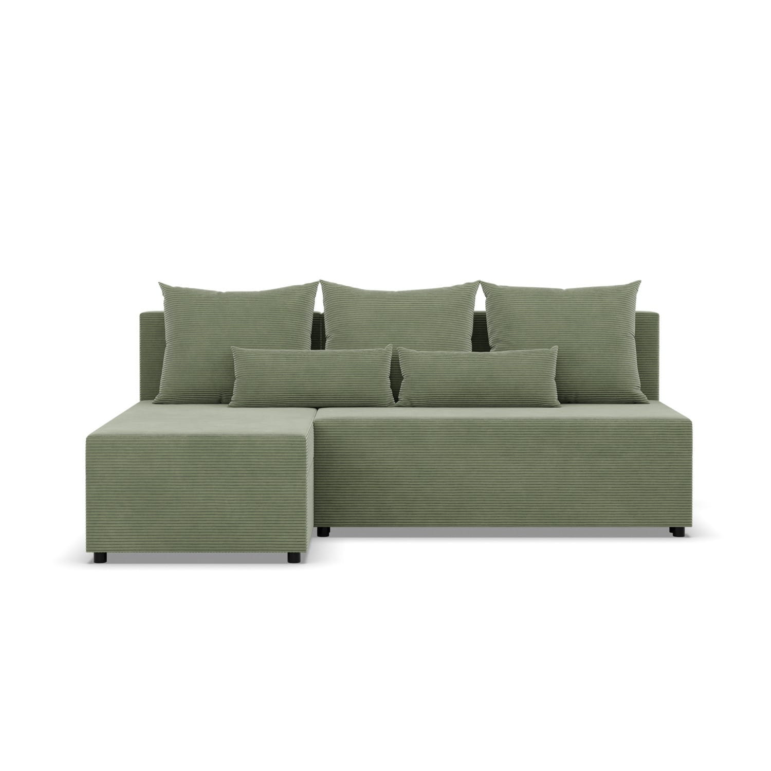Narożnik z luźnymi poduszkami, Vista, sztruks, 201x137x92 cm, oliwkowy. Narożnik VISTA to niezwykle praktyczne i stylowe rozwiązanie dla tych, którzy poszukują prostego, a jednocześnie funkcjonalnego mebla do mniejszego pomieszczenia. Jego minimalistyczny design oraz kompaktowy rozmiar sprawiają, że doskonale pasuje zarówno do salonu, jak i pokoju dziennego.