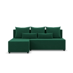 Narożnik z luźnymi poduszkami, Vista, velvet, 201x137x92 cm, butelkowa zieleń. Narożnik VISTA to niezwykle praktyczne i stylowe rozwiązanie dla tych, którzy poszukują prostego, a jednocześnie funkcjonalnego mebla do mniejszego pomieszczenia. Jego minimalistyczny design oraz kompaktowy rozmiar sprawiają, że doskonale pasuje zarówno do salonu, jak i pokoju dziennego.