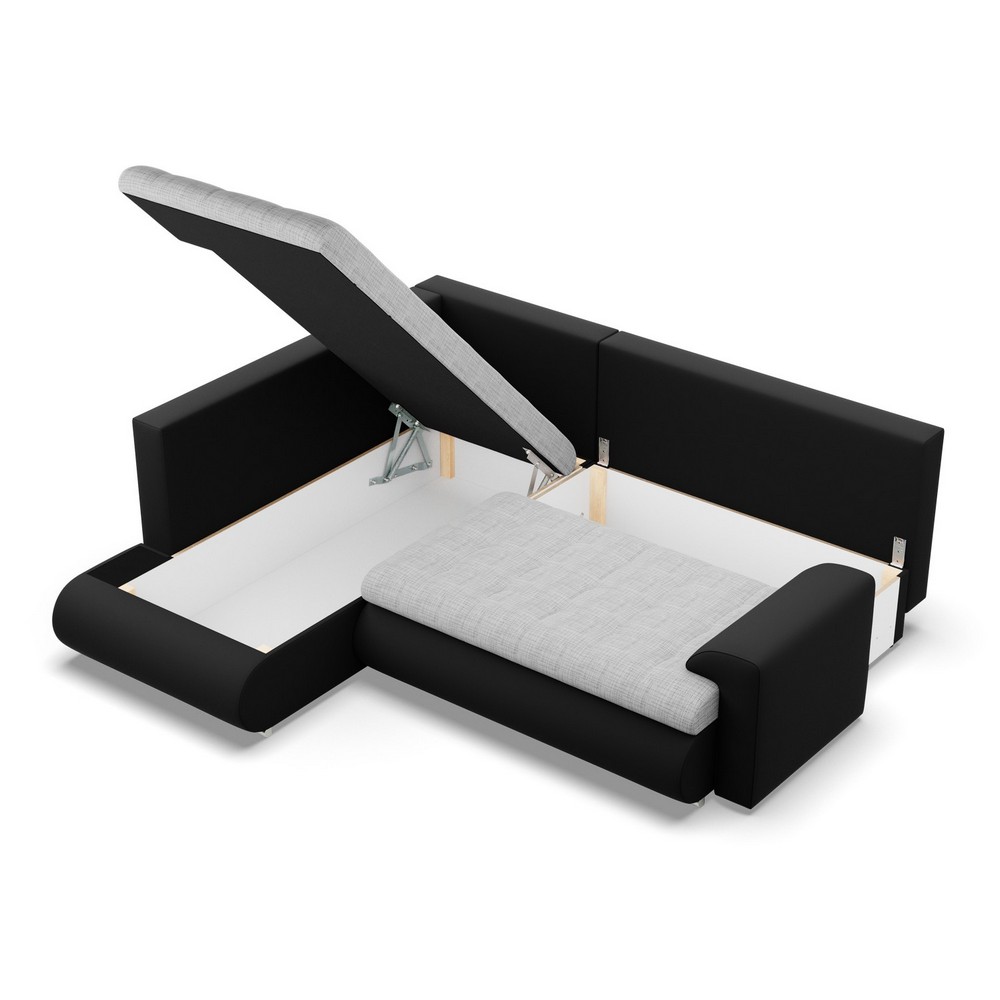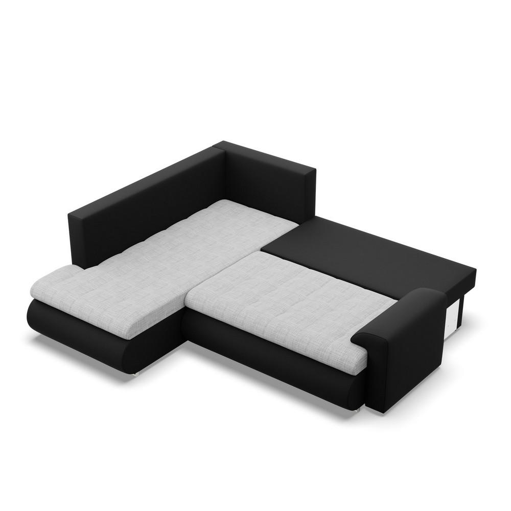 Rogówka BOSCO została wyposażona w wygodną funkcję spania opartą na mechanizmie DL. Wystarczy unieść siedzisko i przesunąć je do przodu, a następnie ułożyć oparcie w powstałej przestrzeni. Dzięki temu w kilka chwil zamienisz narożnik w pełnowymiarowe łóżko o powierzchni 200 × 140 cm. Na uwagę zasługuje także duża pojemność - narożnik posiada nie jeden, a dwa praktyczne schowki na pościel, dzięki czemu z łatwością uporządkujesz tekstylia i zyskasz dodatkowe miejsce do przechowywania.