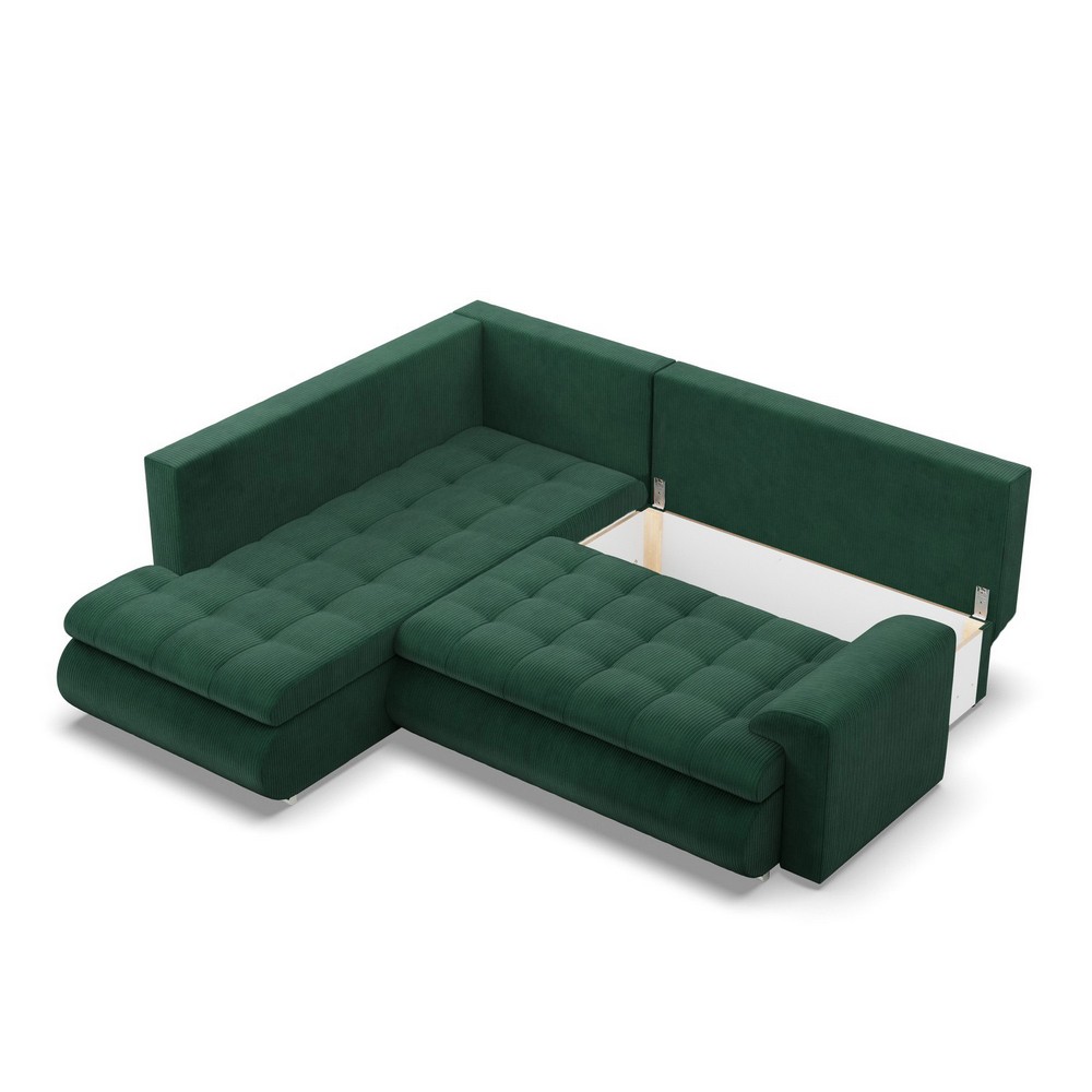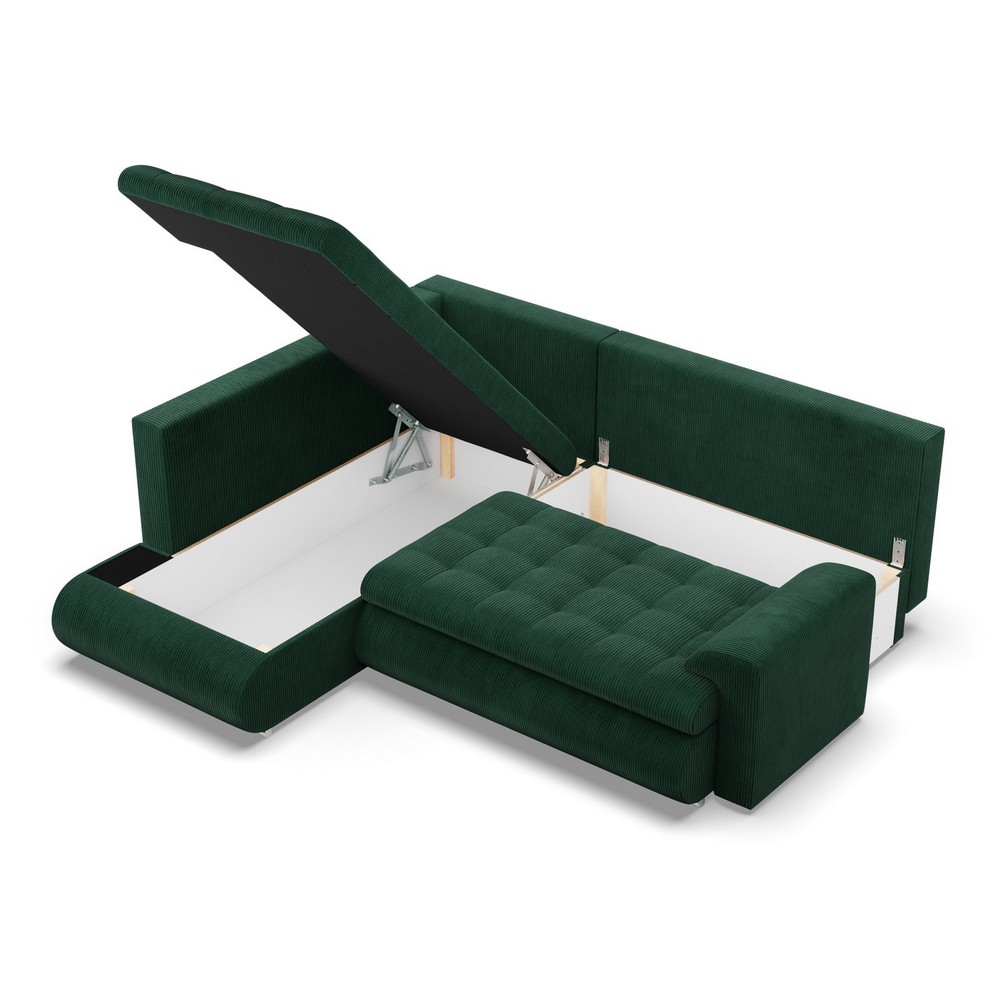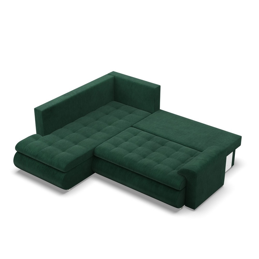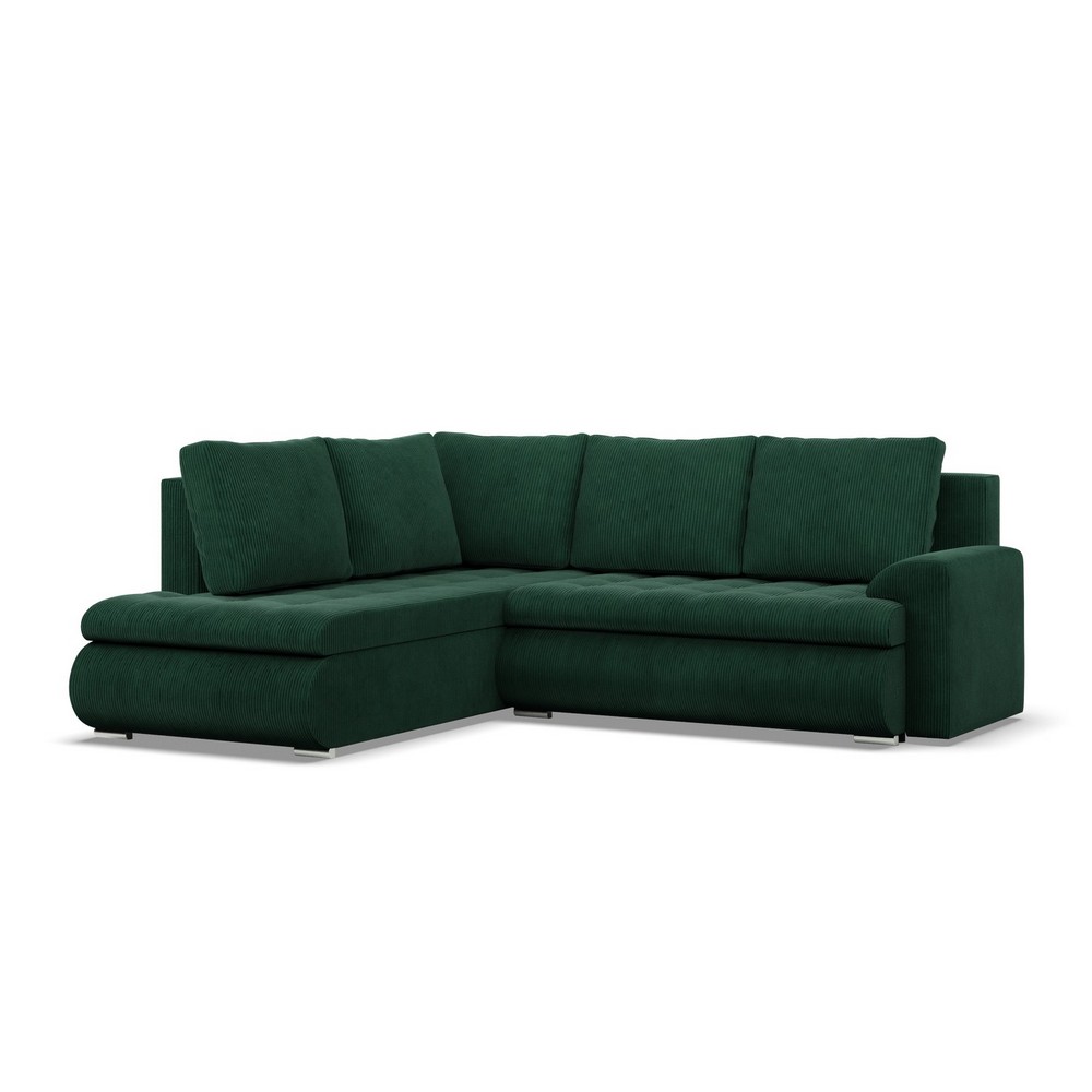 Narożnik z otomaną, lewy, BOSCO, sztruks, 230x200x89 cm, butelkowa zieleń