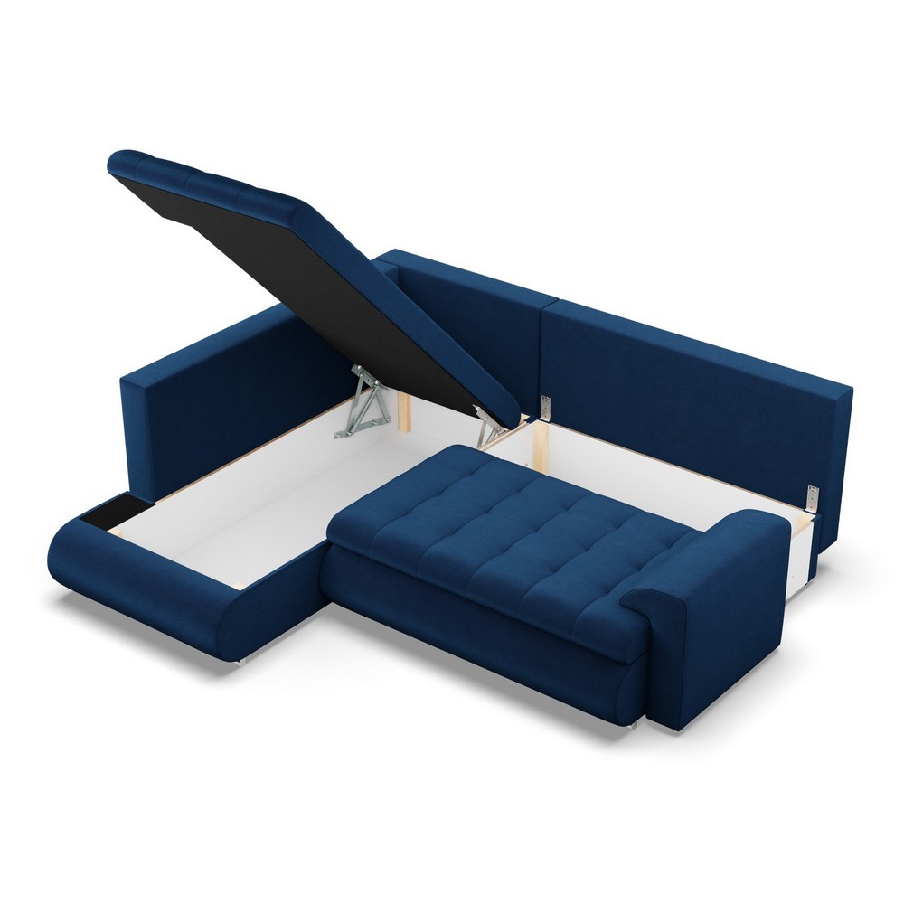 Narożnik z otomaną, lewy, BOSCO, velvet, 230x200x89 cm, granatowy