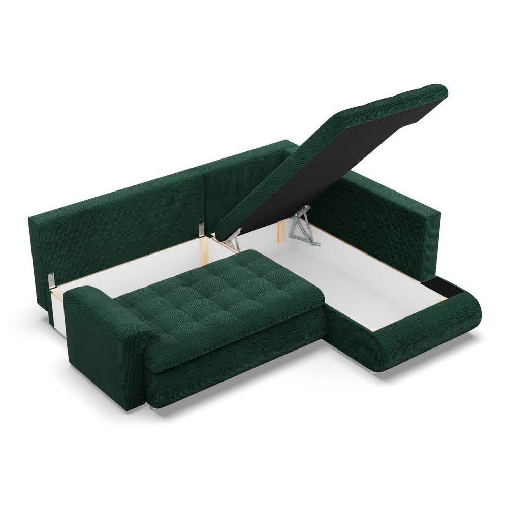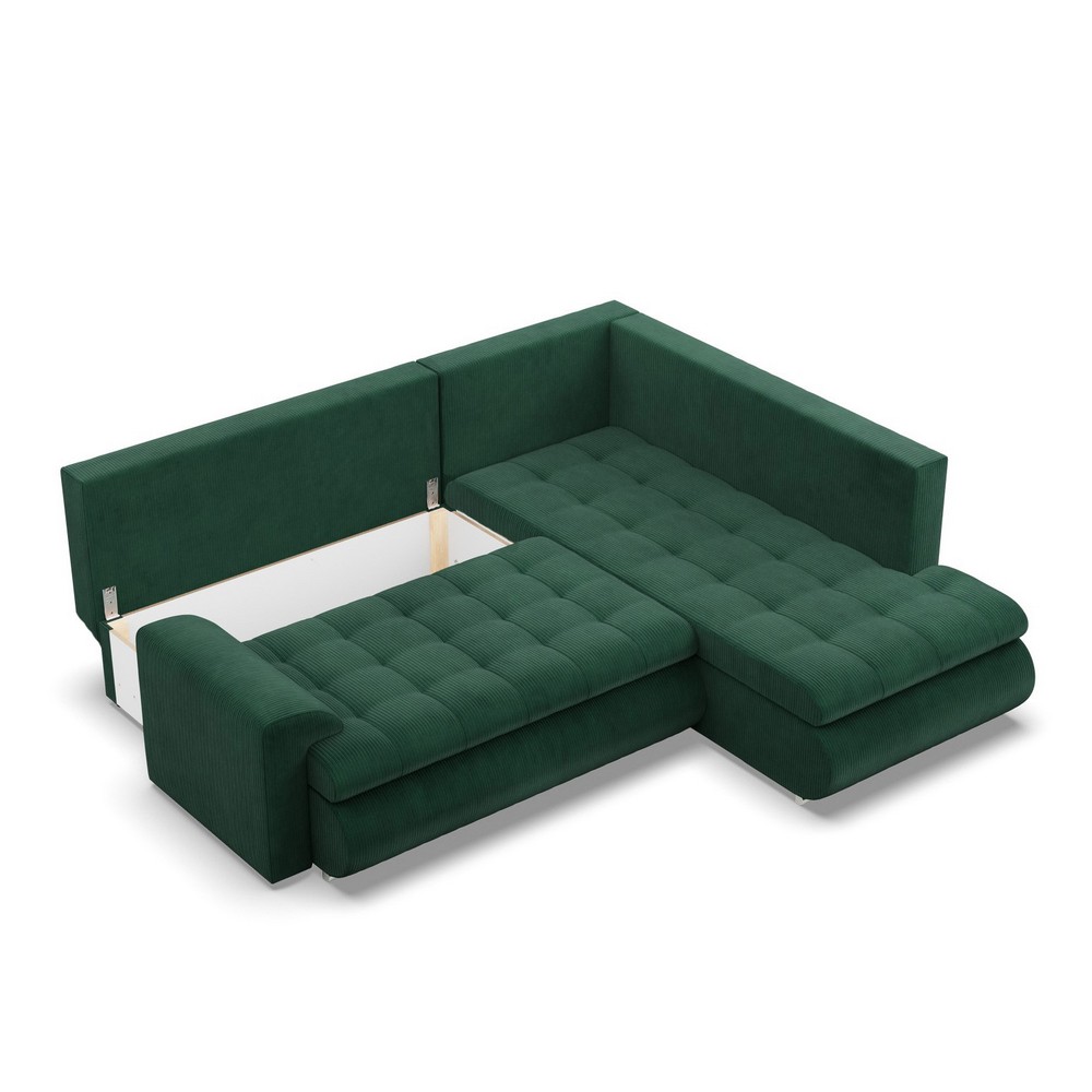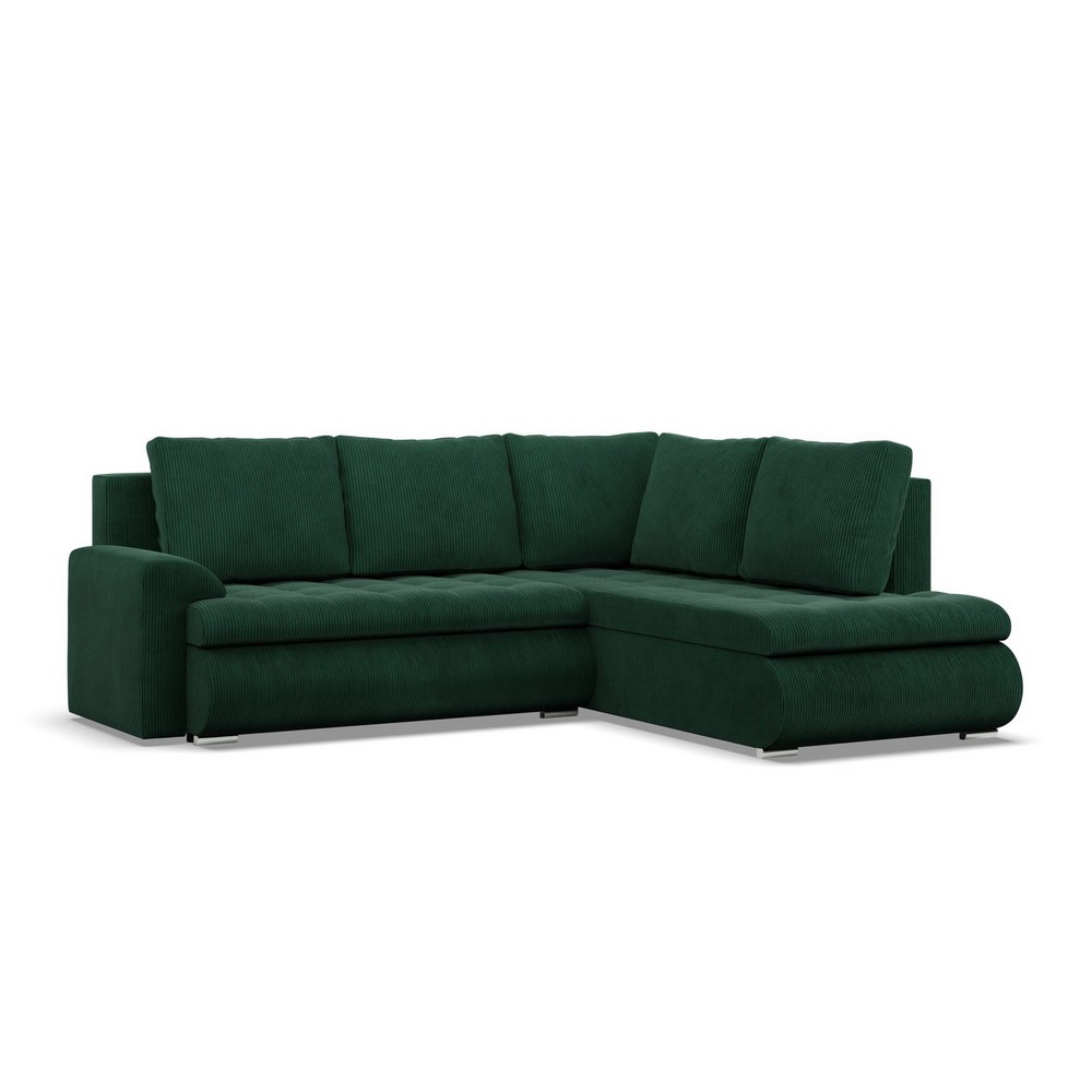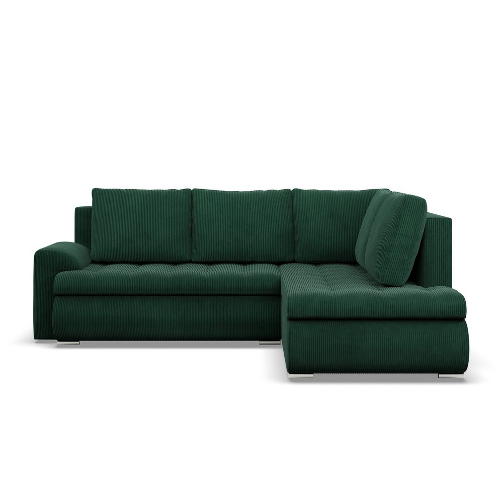 Narożnik z otomaną, prawy, BOSCO, sztruks, 230x200x89 cm, butelkowa zieleń